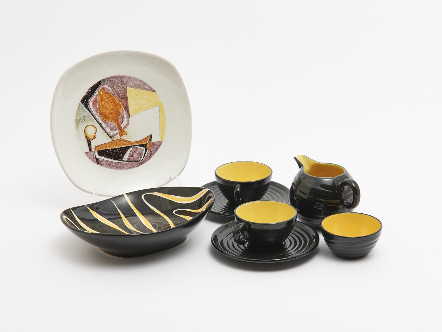 A FRENCH SIX PIECE PART COFEE SET, A WEST GERMAN DISH AND ANOTHER ITALIAN DISH DIA.23CM (LARGEST), LEONARD JOEL LOCAL DELIVERY: SMALL