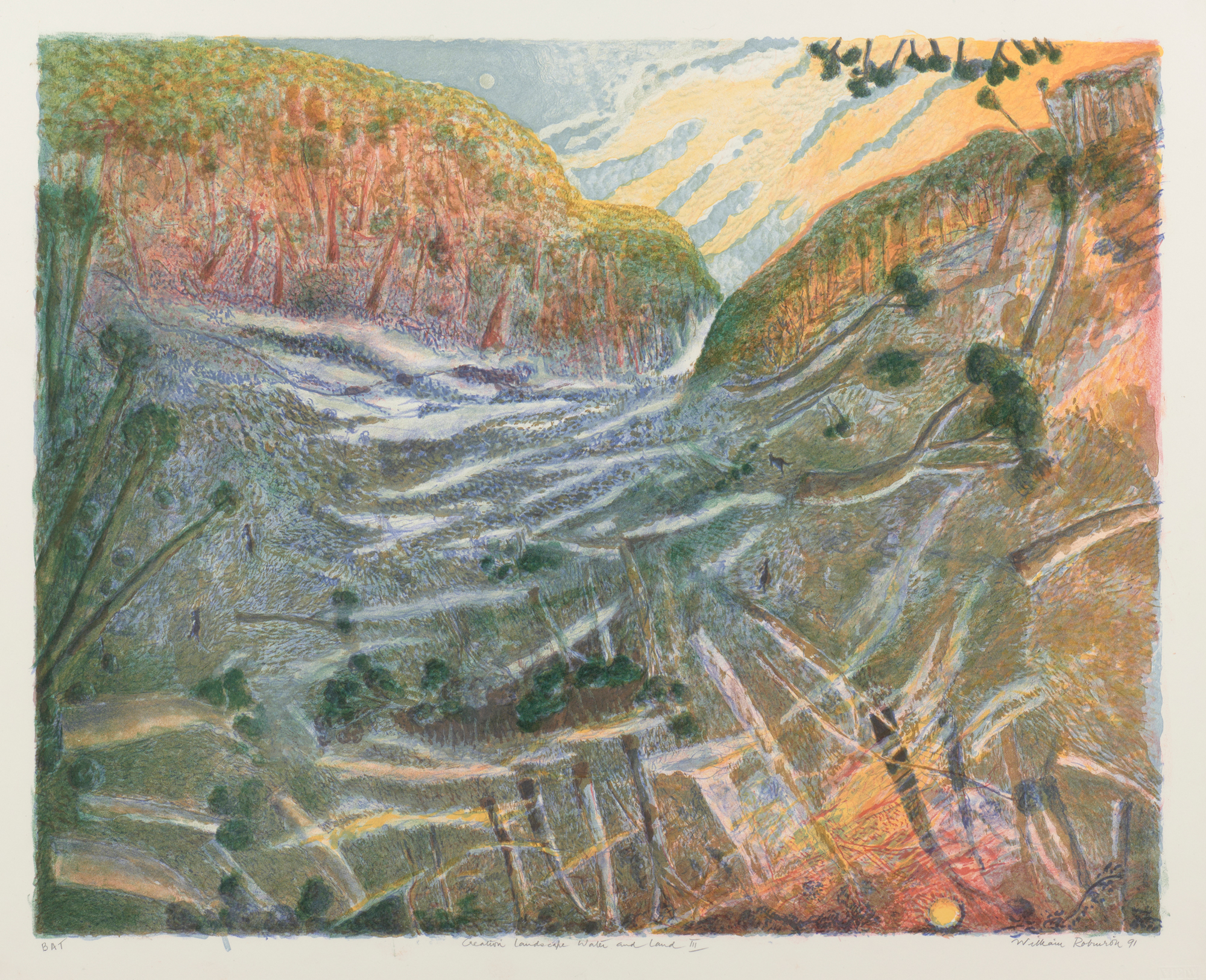 Creation Landscape: Water and Land 1991, oil on canvas (triptych), 183 x 732cm (overall), Private collection.