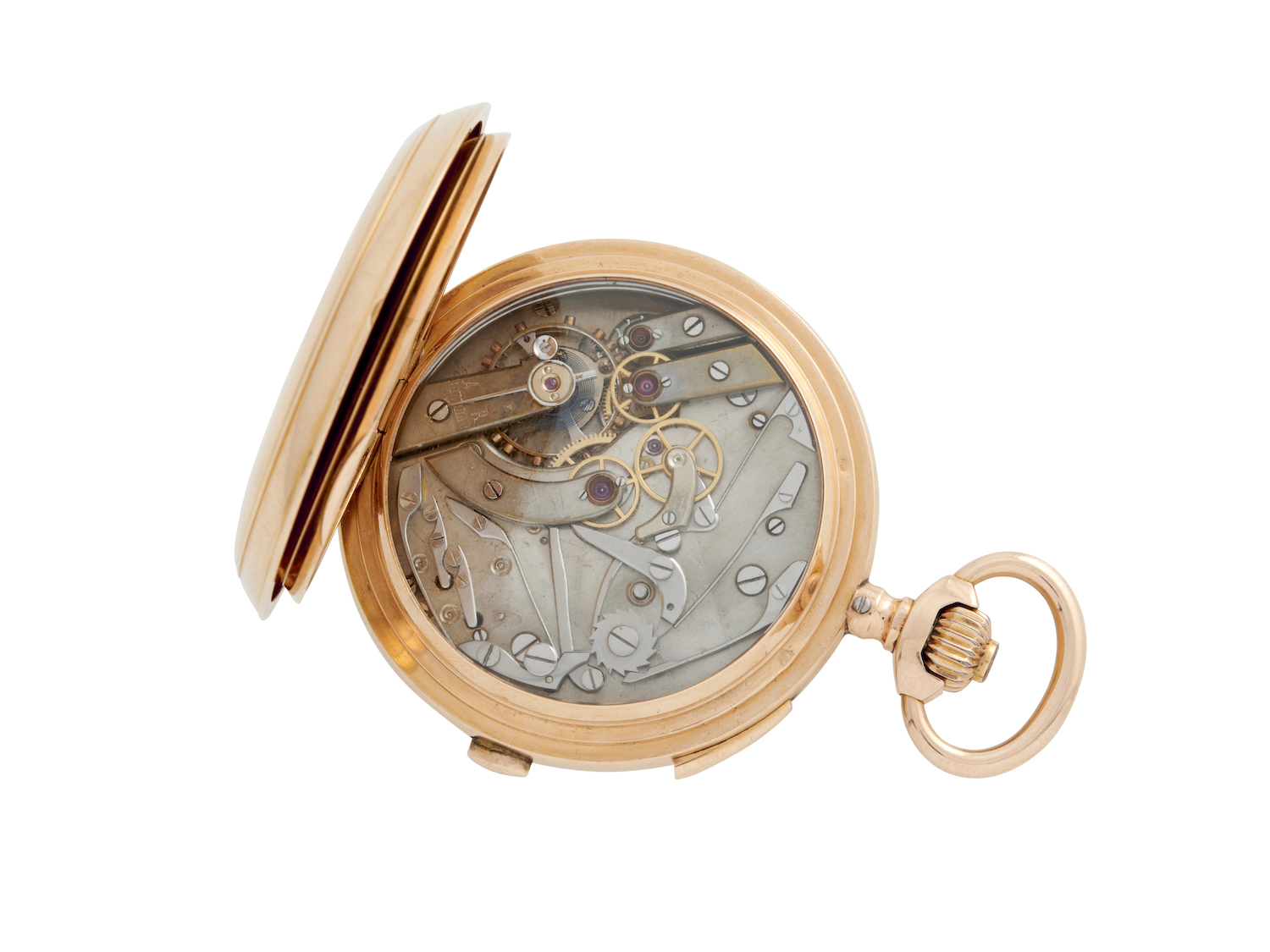 18CT GOLD QUARTER REPEATING HUNTINGCASED KEYLESS LEVER CHRONOGRAPH LATE 19TH CENTURY
