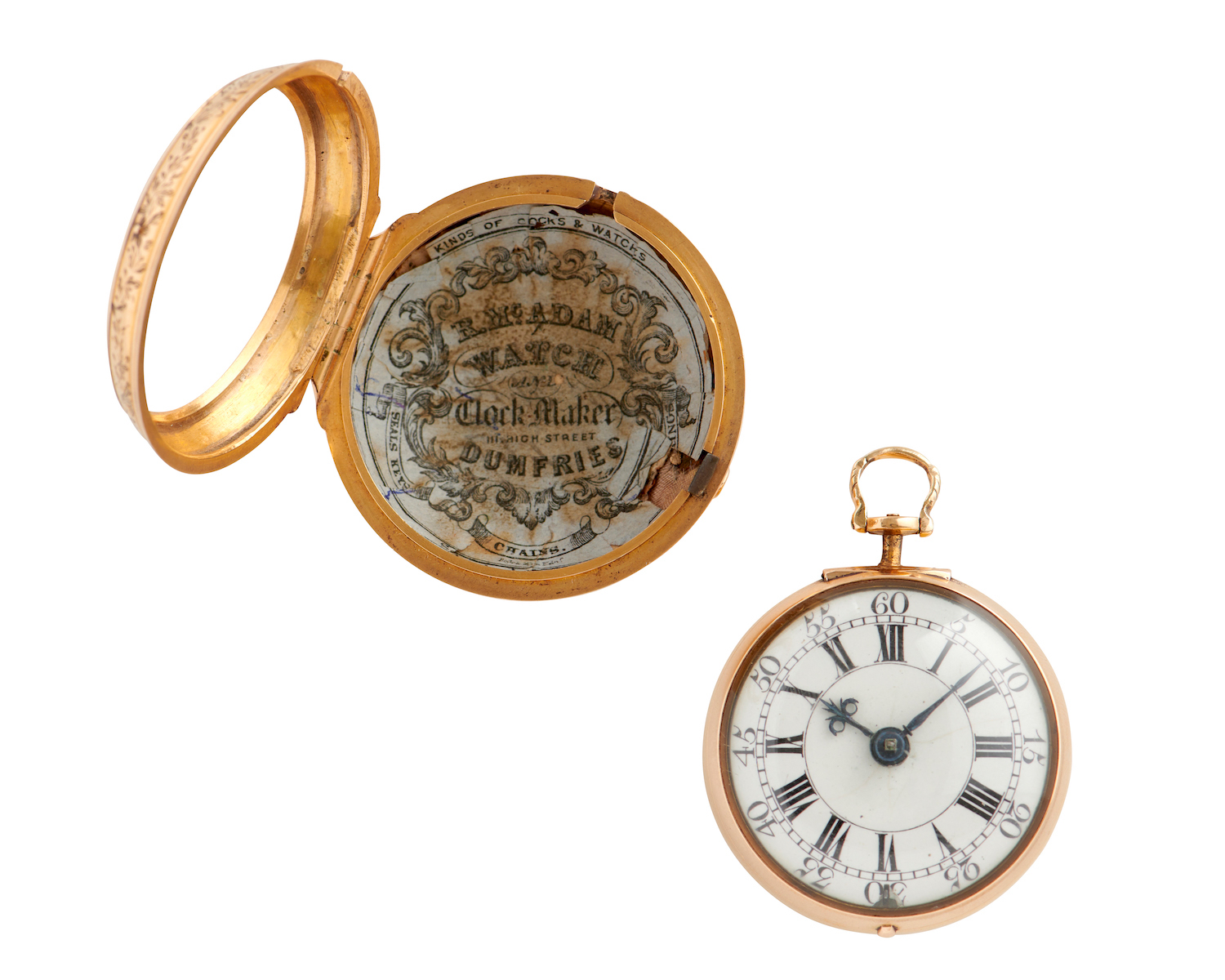 Movement: gilt full plate fusee movement with baluster pillars, pierced engraved balance cock with mask