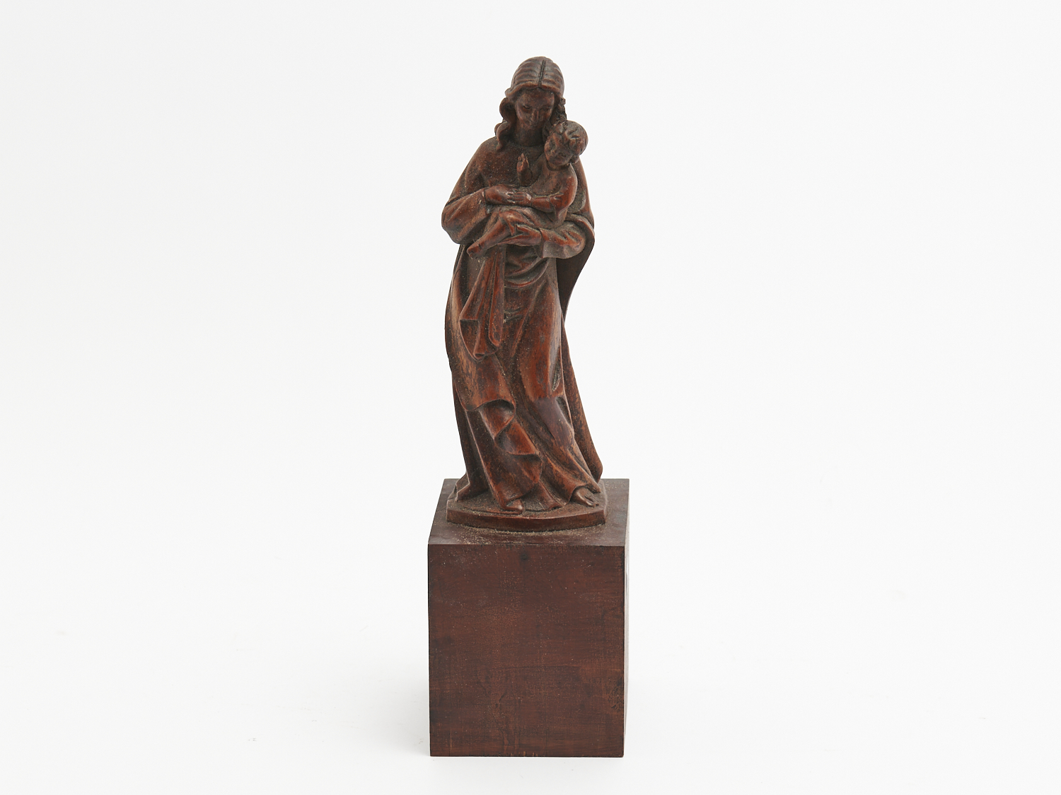 A HAND-CARVED WOODEN MADONNA AND CHILD H.40CM (WITH BASE), LEONARD JOEL LOCAL DELIVERY: SMALL