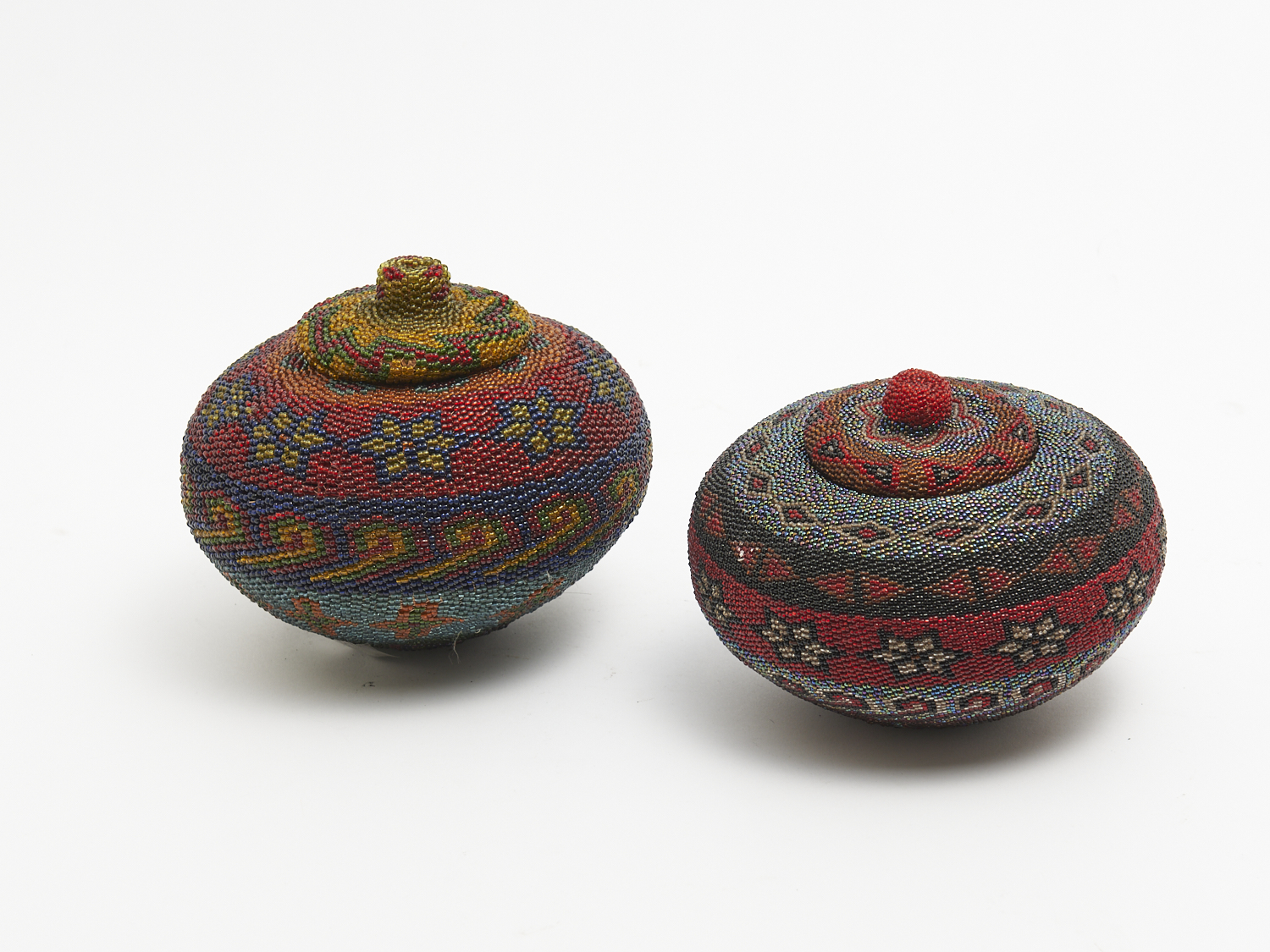 TWO BEADED AND LIDDED BASKETS H.16CM, LEONARD JOEL LOCAL DELIVERY: SMALL