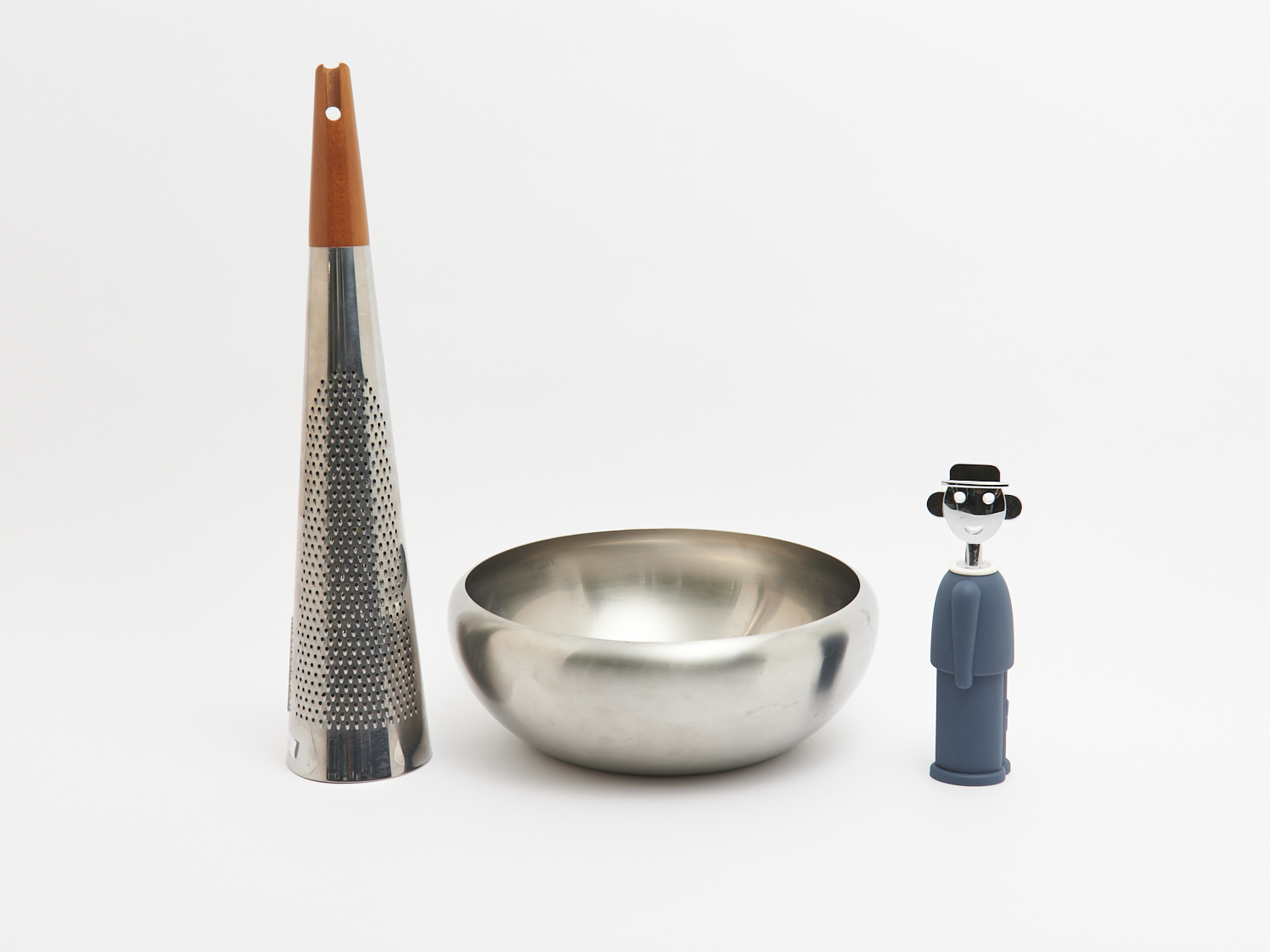 THREE PIECES OF ALESSI INCLUDING A BOWL, GRATER, AND A CORK SCREW H.47CM (GRATER), LEONARD JOEL LOCAL DELIVERY: SMALL