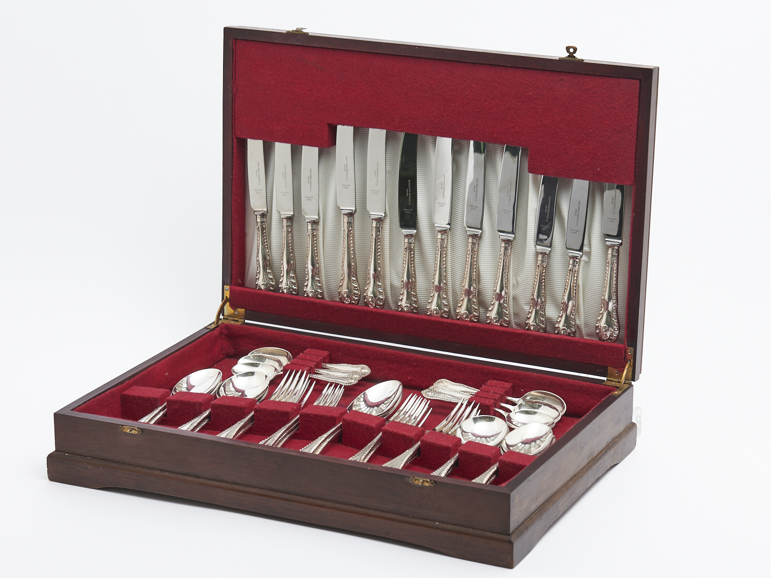 A SLACK AND BARLOW BOXED CUTLERY SET OF 44 PIECES, LEONARD JOEL LOCAL DELIVERY: SMALL