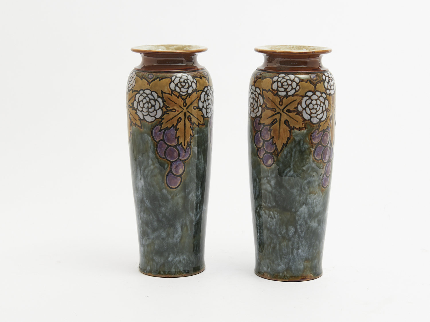 A PAIR OF ROYAL DOULTON STONEWARE VASES, INTIALLED FJ TO UNDERSIDE OF BASE H.31CM, LEONARD JOEL LOCAL DELIVERY: MEDIUM