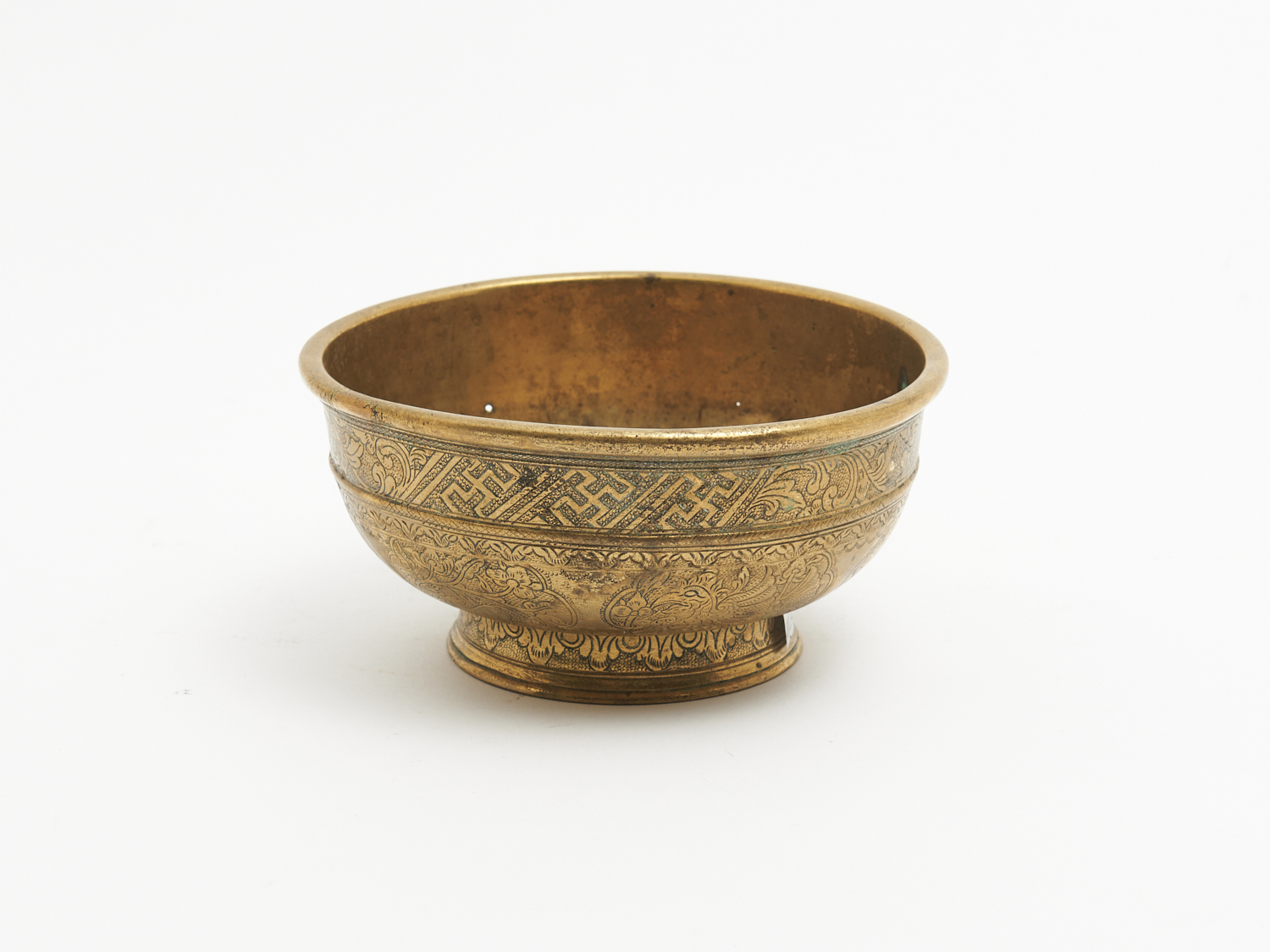 A BRONZE FOOTED BOWL WITH PROFUSE ENGRAVING DIA.18CM, LEONARD JOEL LOCAL DELIVERY: SMALL