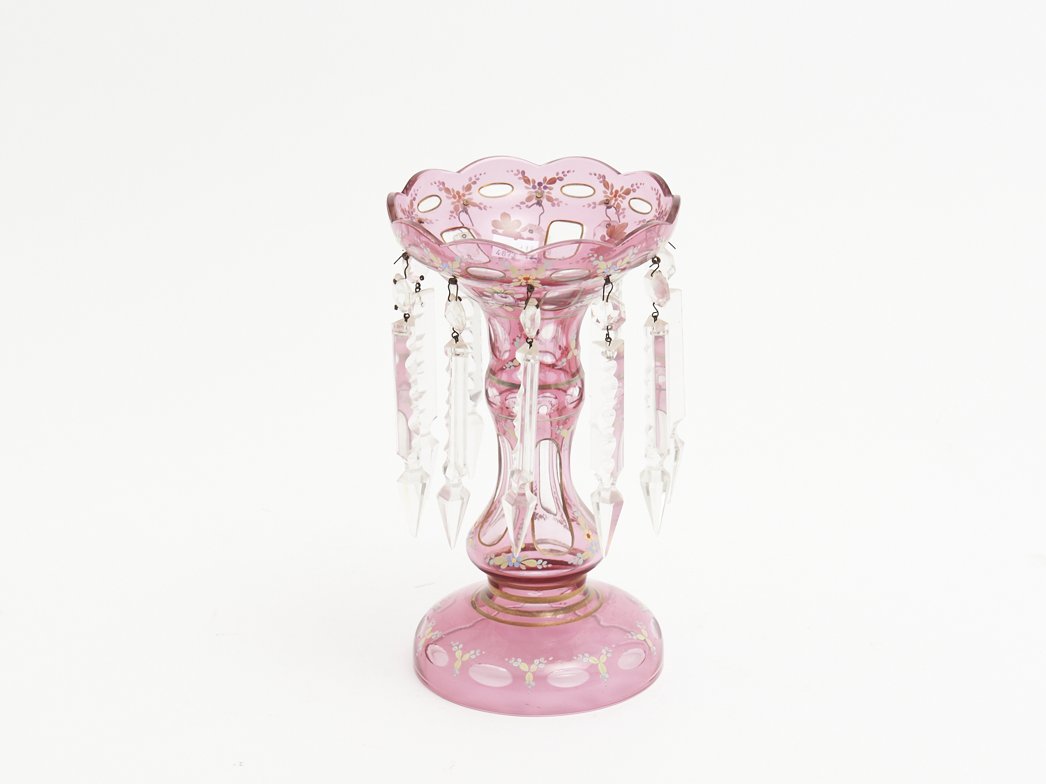 A RUBY HAND PAINTED LUSTRE GLASS VASE H.23.5CM, LEONARD JOEL LOCAL DELIVERY: SMALL