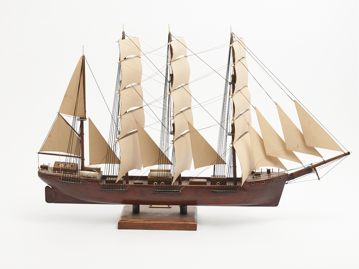 A THREE MAST TALL SHIP NAMED 'HOWDAN' ON A BLACKWOOD BASE H.52CM LEONARD JOEL LOCAL DELIVERY: MEDIUM
