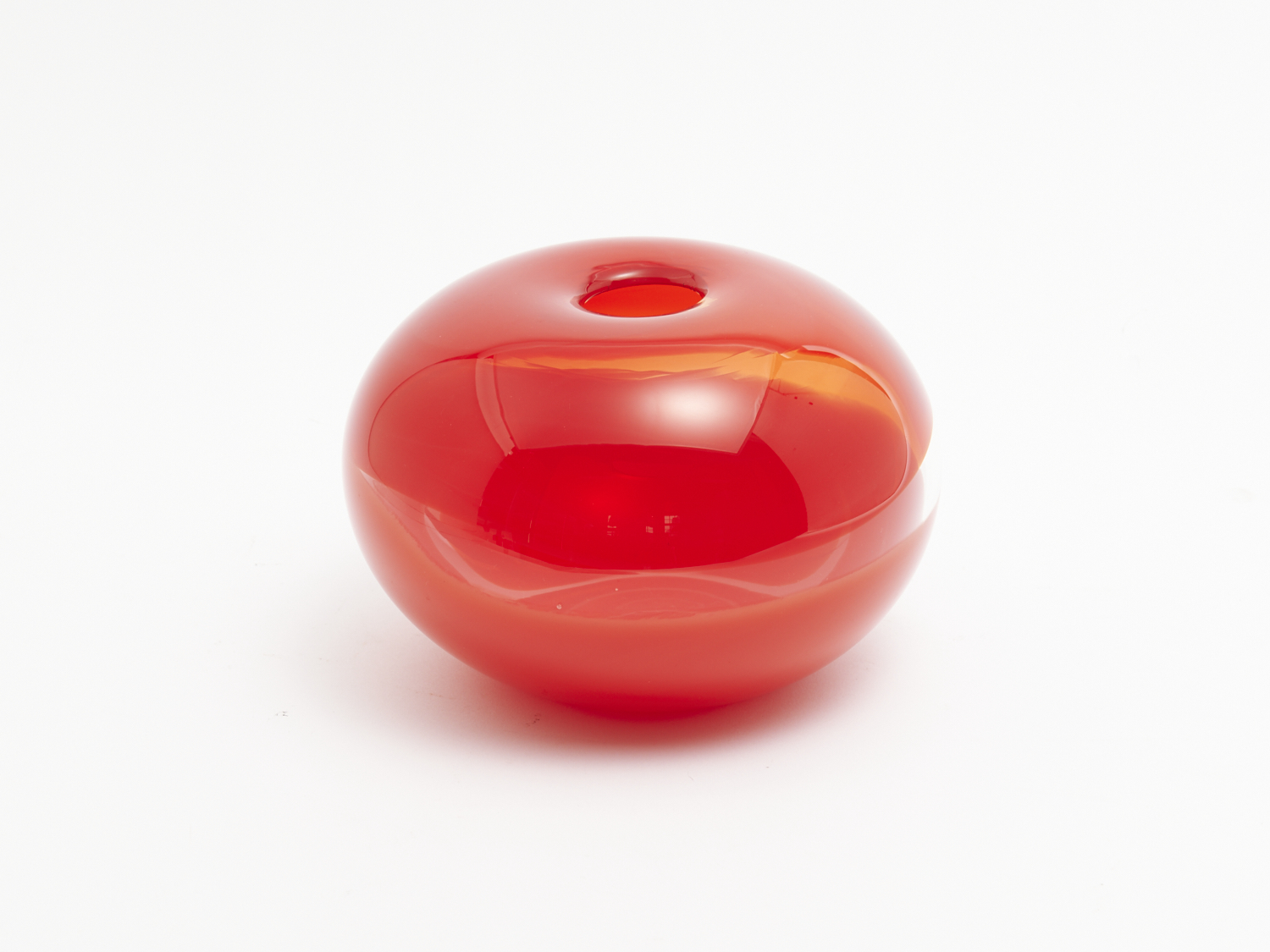 AN SIGNED ART GLASS RED BULBOUS FORM VASE DIA.23CM, LEONARD JOEL LOCAL DELIVERY: SMALL