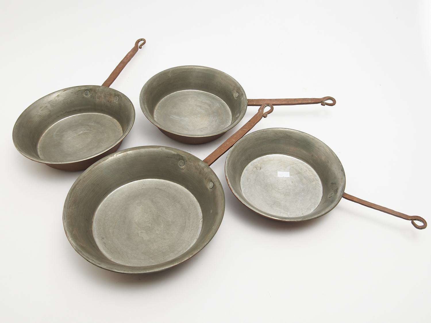 A GRADUATED SET OF FIVE FRENCH COPPER AND BRASS HANDLE STAINLESS STEEL LINED SAUCEPANS DIA.26CM (LARGEST), LEONARD JOEL LOCAL DELIVERY: MEDIUM