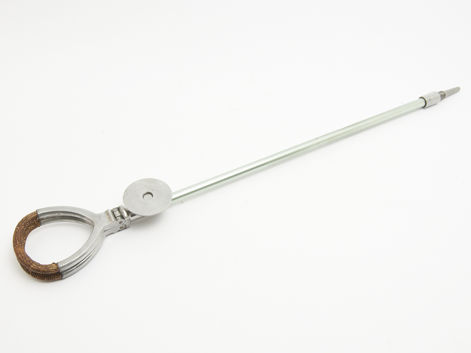 A VINTAGE ENGLISH MADE FOLDING WALKING STICK/SHOOTING STICK WITH SNAKESKIN LEATHER HANDLE L.80CM, LEONARD JOEL LOCAL DELIVERY: SMALL