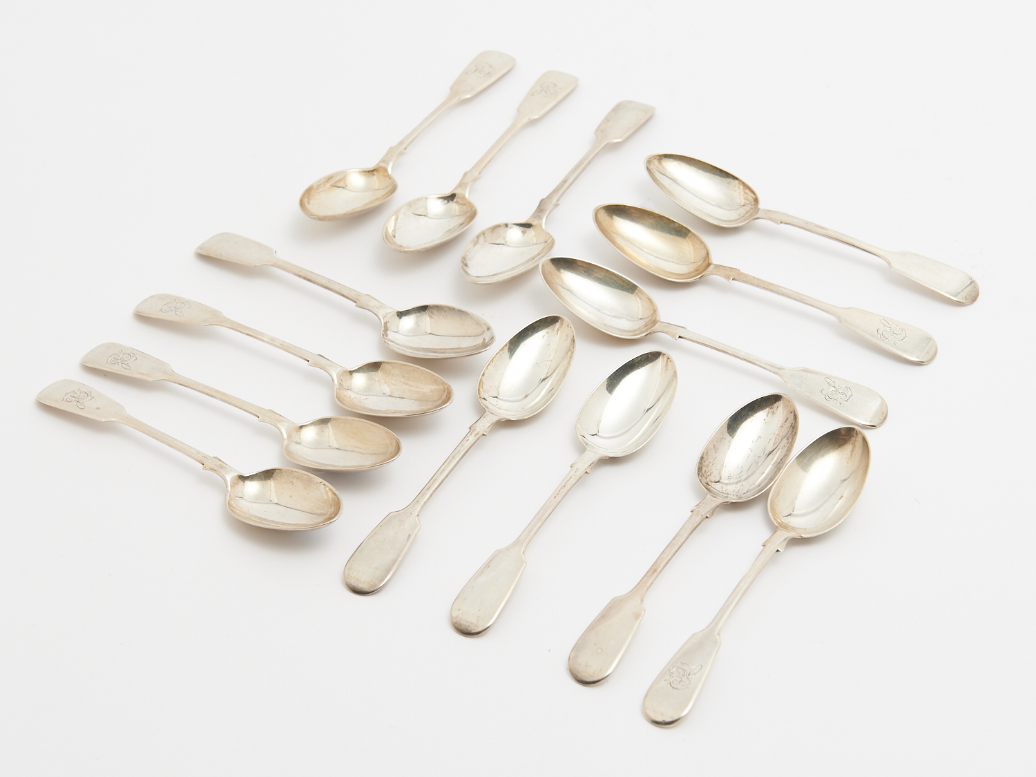 A COLLECTION OF STERLING SILVER FIDDLE PATTERN SPOONS, 248GMS, LEONARD JOEL LOCAL DELIVERY: SMALL
