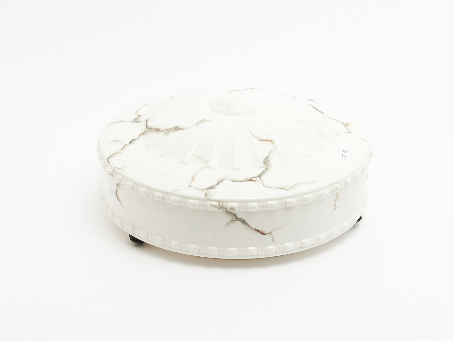 AN ORIGINAL 1900S FAUX MARBLE GLASS HANGING LIGHTSHADE WITH CHAINS DIA.36CM, LEONARD JOEL LOCAL DELIVERY: MEDIUM