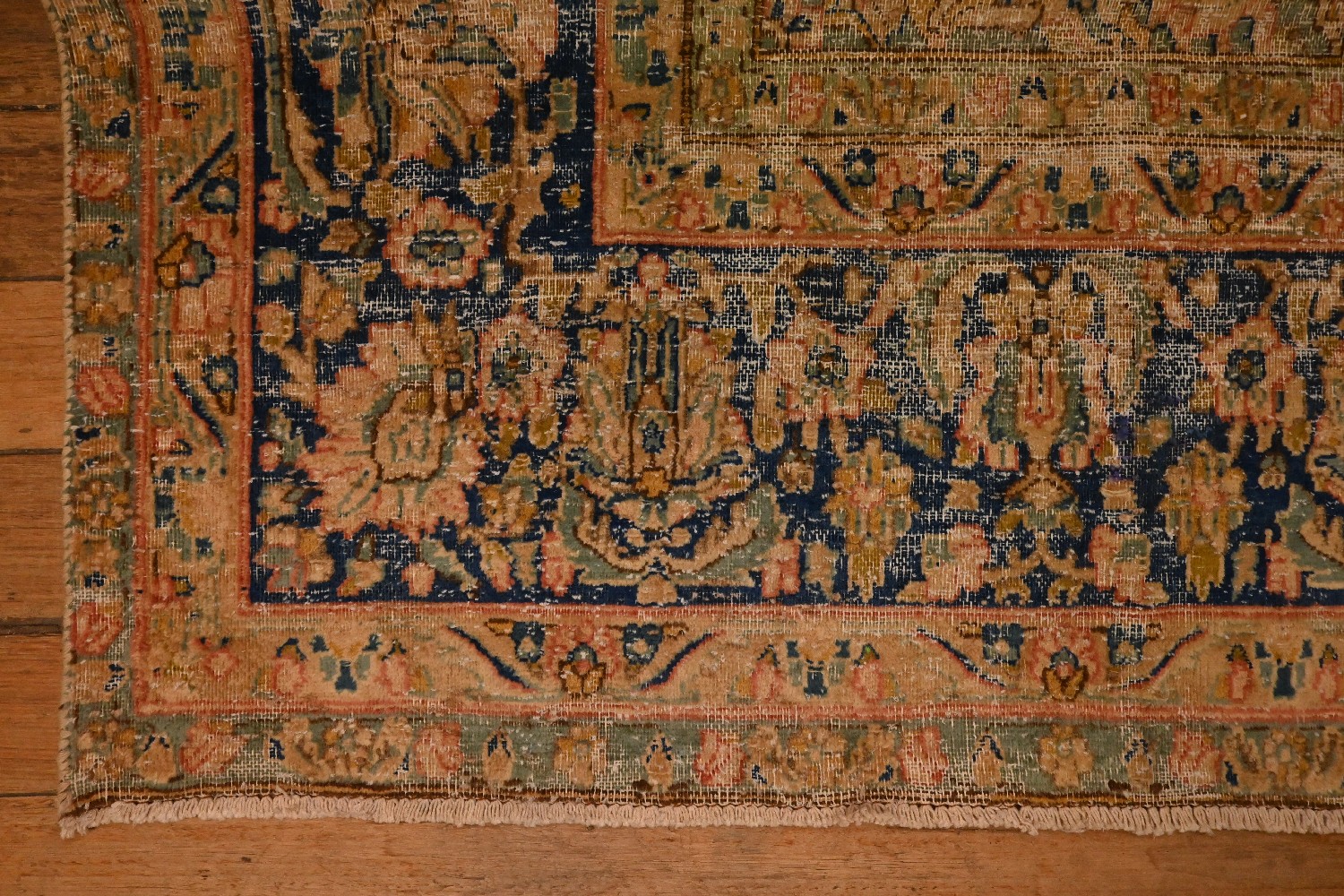 A PERSIAN SOLID & DENSE WEAVE KASHAN RUG, 100% LAMBS WOOL PLUSH PILE. CENTRAL SUNBURST ELONGATED MEDALLION IN NAVY BLUE, RED AND FRE...