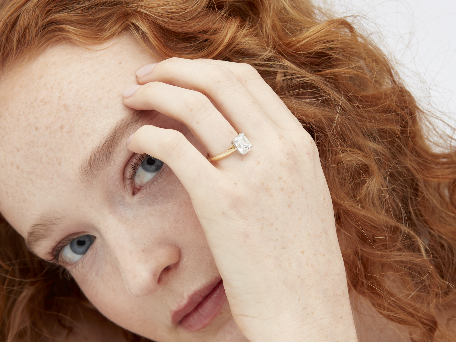 Claw-set with a Victorian-cut diamond weighing approximately 2.67 carats, size M.