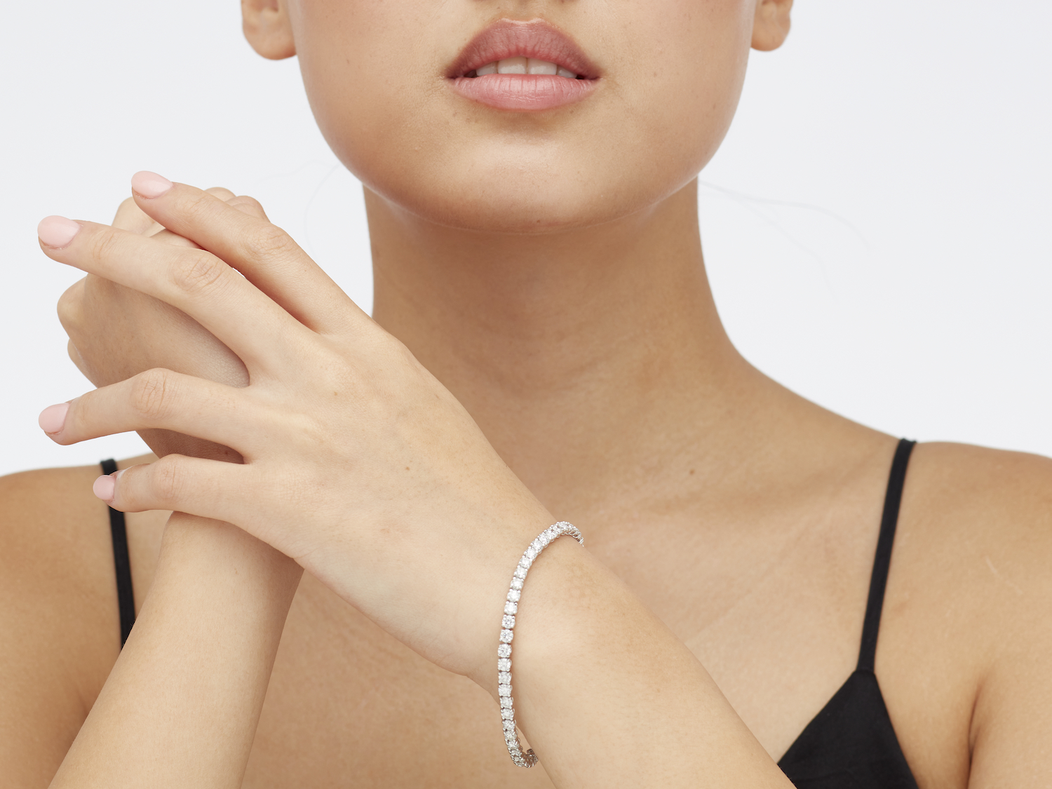 Designed as a continuous line of fifty claw-set brilliant-cut diamonds together weighing approximately weighing 7.78 carats, completed by a tongue and groove clasp, length approximately 185mm.