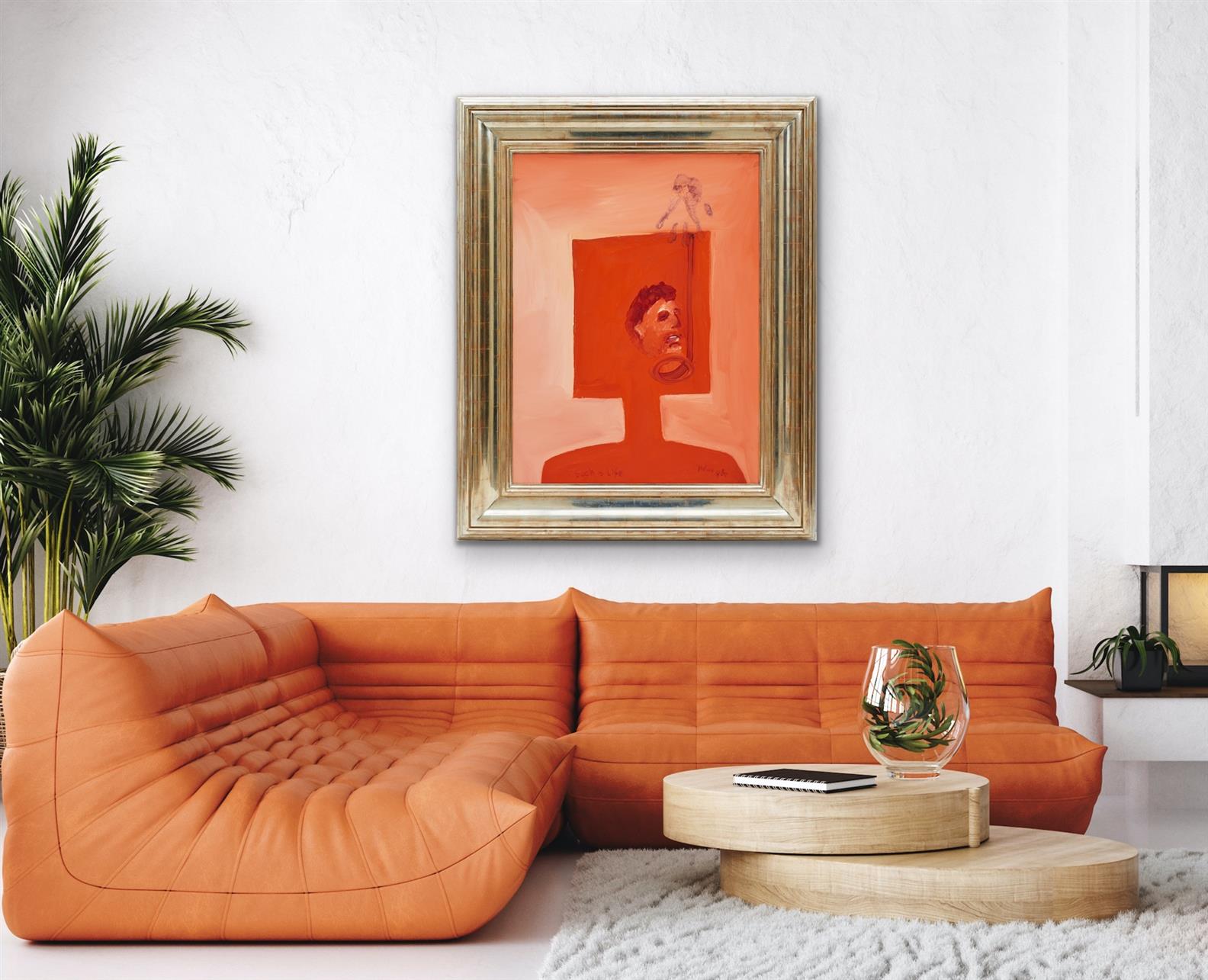 The artwork Mask (1980) depicts Kelly's last moments in a haze of orange layers, the prominent silhouetted mask depicted in a rich block of colour. A handprint and hanging noose draw the attention down to a portrait, presumably of Kelly, in the centre of the composition. The painterly marks draw an expressive portrait, conveying the harrowing moment. Trailing towards the bottom of the work, Nolan has inscribed Kelly's legendary (yet highly debated) last words "such is life," almost inconspicuously at the bottom on the canvas.