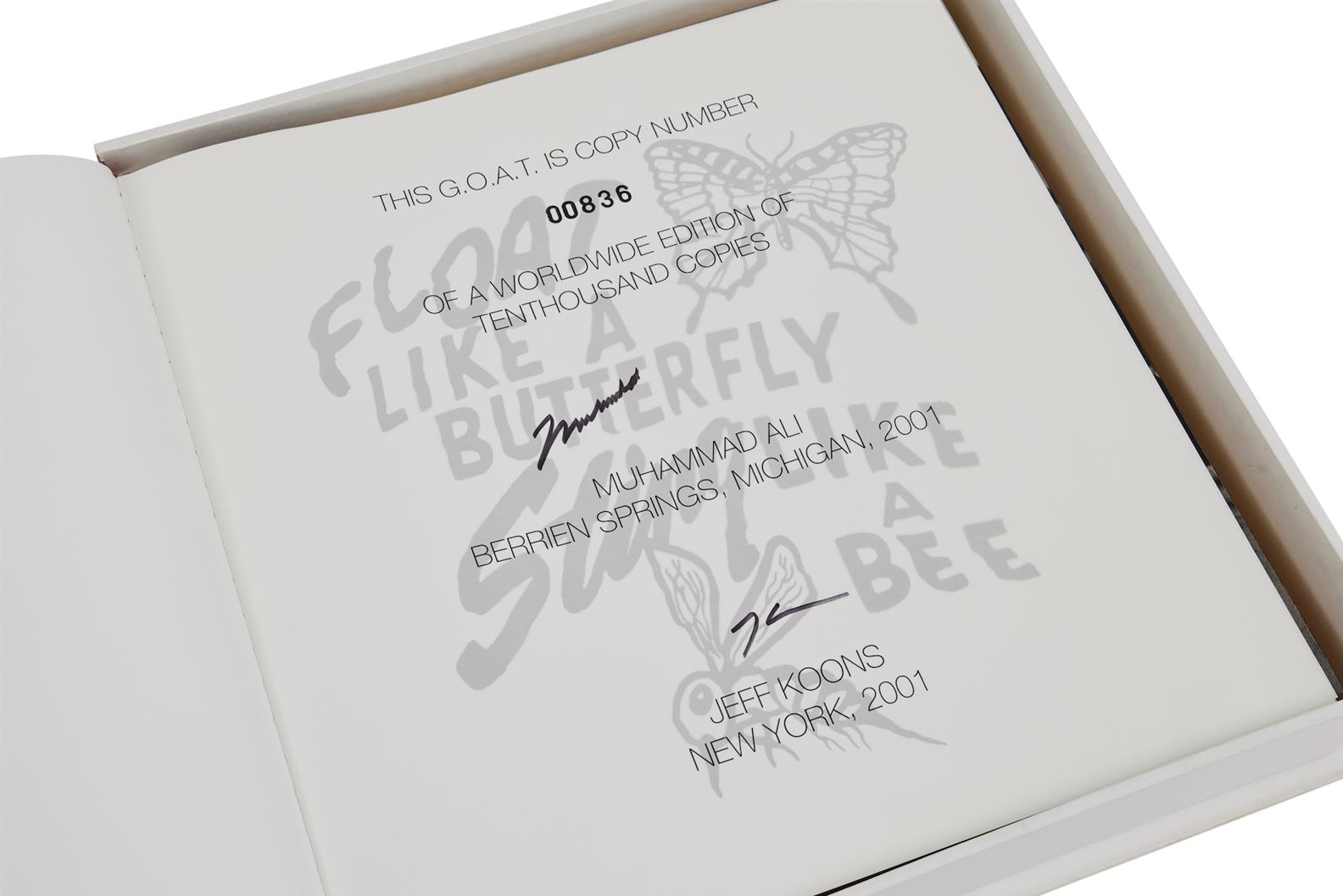Edition of 1,000, signed by Muhammad Ali and Jeff Koons in hardcover clamshell box with four gelatin silver prints signed by Howard L. Bingham and Muhammad Ali, together with 'Radial Champs' sculpture and print by Jeff Koons.