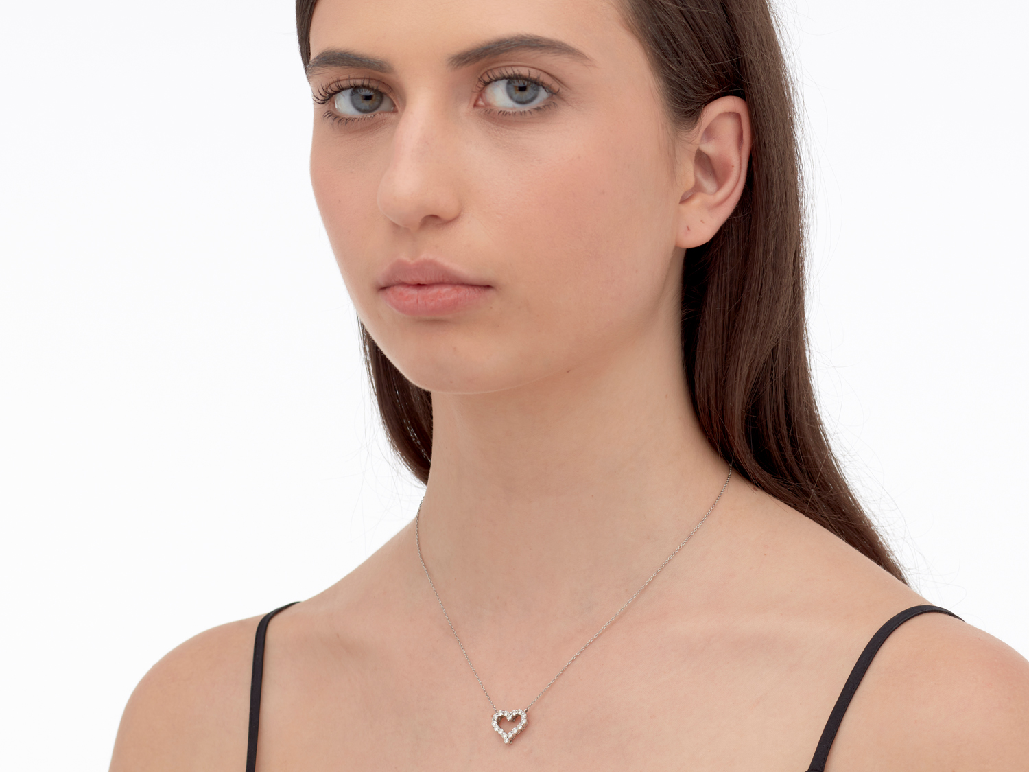 Modelled as an open heart, set throughout with brilliant-cut diamonds together weighing approximately 0.48 carats, suspended from a fine trace chain completed by a blot-ring clasp, signed Tiffany & Co, length 420mm.