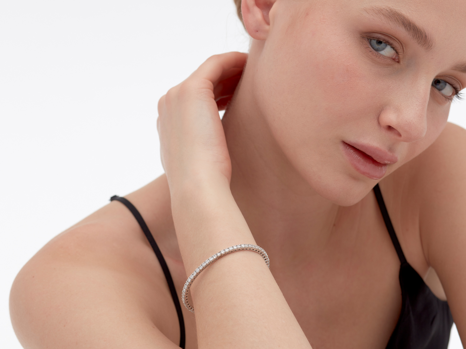 The flexible oval bangle, claw-set with fifty-seven brilliant-cut diamonds together weighing approximately 4.50 carats, completed by a tongue and groove clasp, inner circumference approximately 165mm.