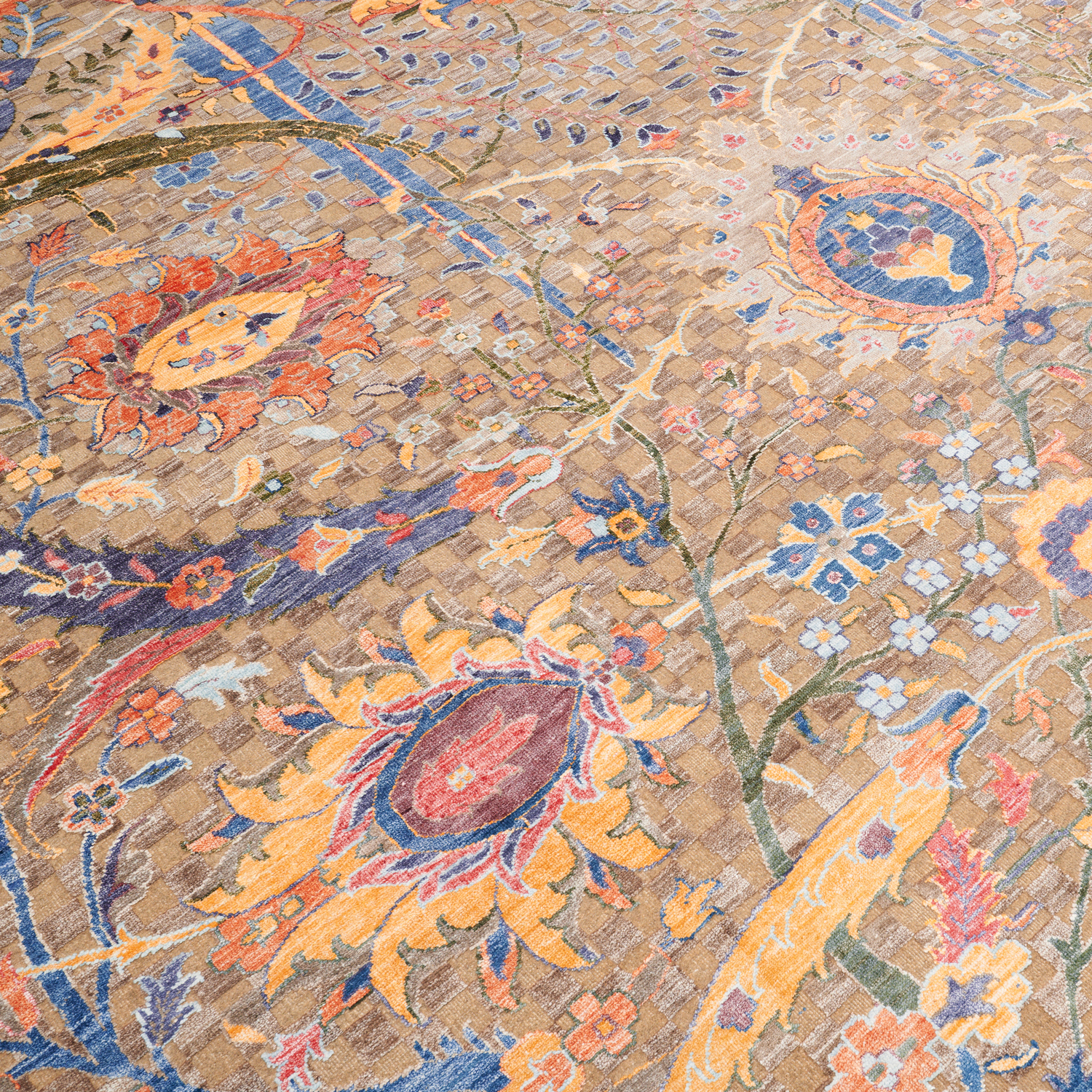 A MAGNIFICENT PERSIAN QUM SILK CARPET. 100% PURE CASPIAN SILK FOUNDATION; PURE SILK PILE. FINELY HAND- KNOTTED; SHIRAZI; ATELIER WEA...