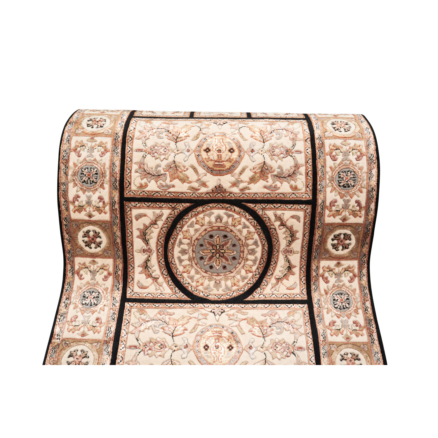 A NEW SUPERFINE, PALATIAL SIZE IMPERIAL VERSACE DESIGN RUG. HAND KNOTTED, 100% WOOL AND TENCEL SILKY TEXTURE. HAND CARVED WITH EMBOSSED SILK FLOWERS. IN ALL OVER NEUTRAL TONES WITH A TOUCH OF PEACH. SUPER SOLID WEAVE. SIZE: 806 X 79 CM - ORIGIN: JAIPUR - RRP: $9,800 DOCUMENTATION OF AUTHENTICITY INCLUDED.