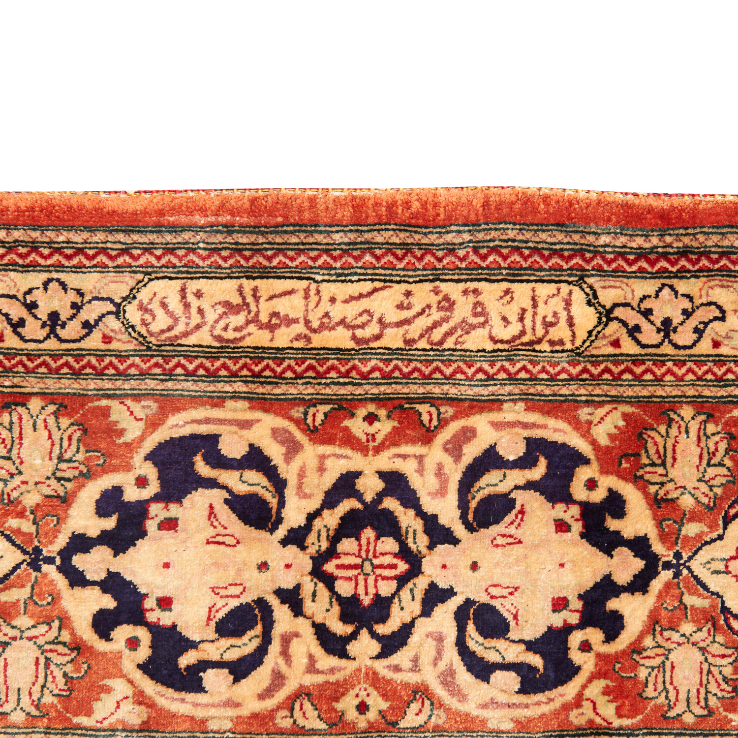 A MAGNIFICENT PERSIAN QUM SILK CARPET. 100% PURE CASPIAN SILK FOUNDATION; PURE SILK PILE. FINELY HAND- KNOTTED; SHIRAZI; ATELIER WEA...