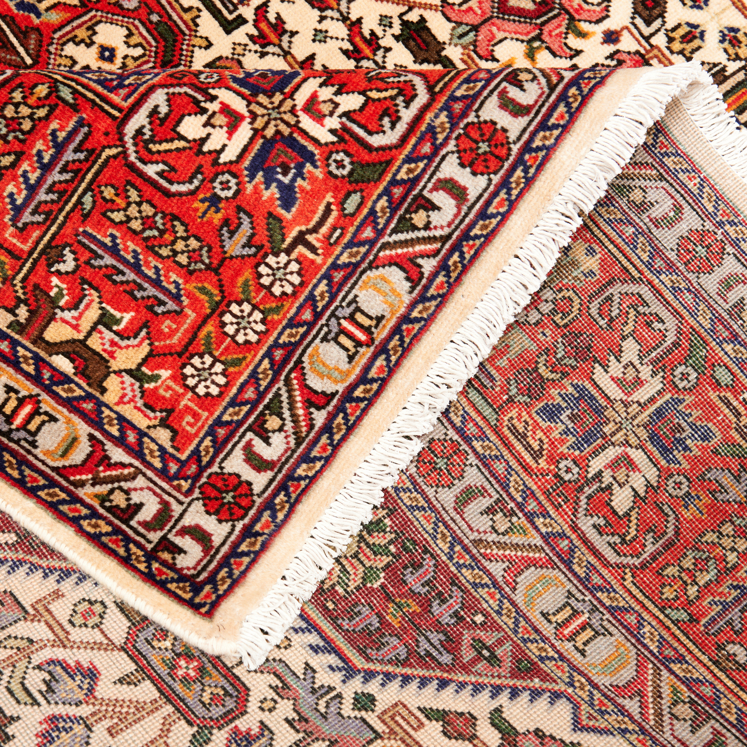 A PERSIAN TABRIZ AZARSHAHR CARPET. 100% SOLID AND DENSE WOOL PILE. ELONGATED CENTRAL MEDALLION WITH TABRIZ ALL OVER DESIGN OF LARGE SHAH ABASI PALMETTES, TENDRILS, CYPRESS TREE, AND FLORAL SPRAYS .IN TONES OF BLUE, SAGE GREEN, AND BRONZE AND ROSE ON AN IVORY FIELD. SIZE: 292 X 198 CM ORIGIN: PERSIA - RRP: $3,700 DOCUMENTATION OF AUTHENTICITY INCLUDED.