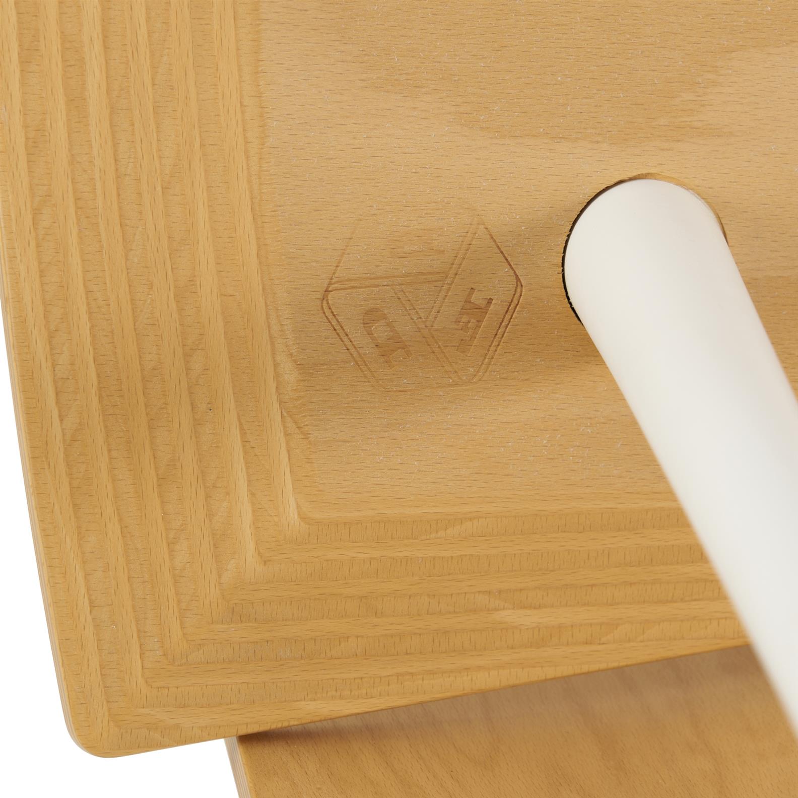 White painted beech frame with shaped beech ply seat.