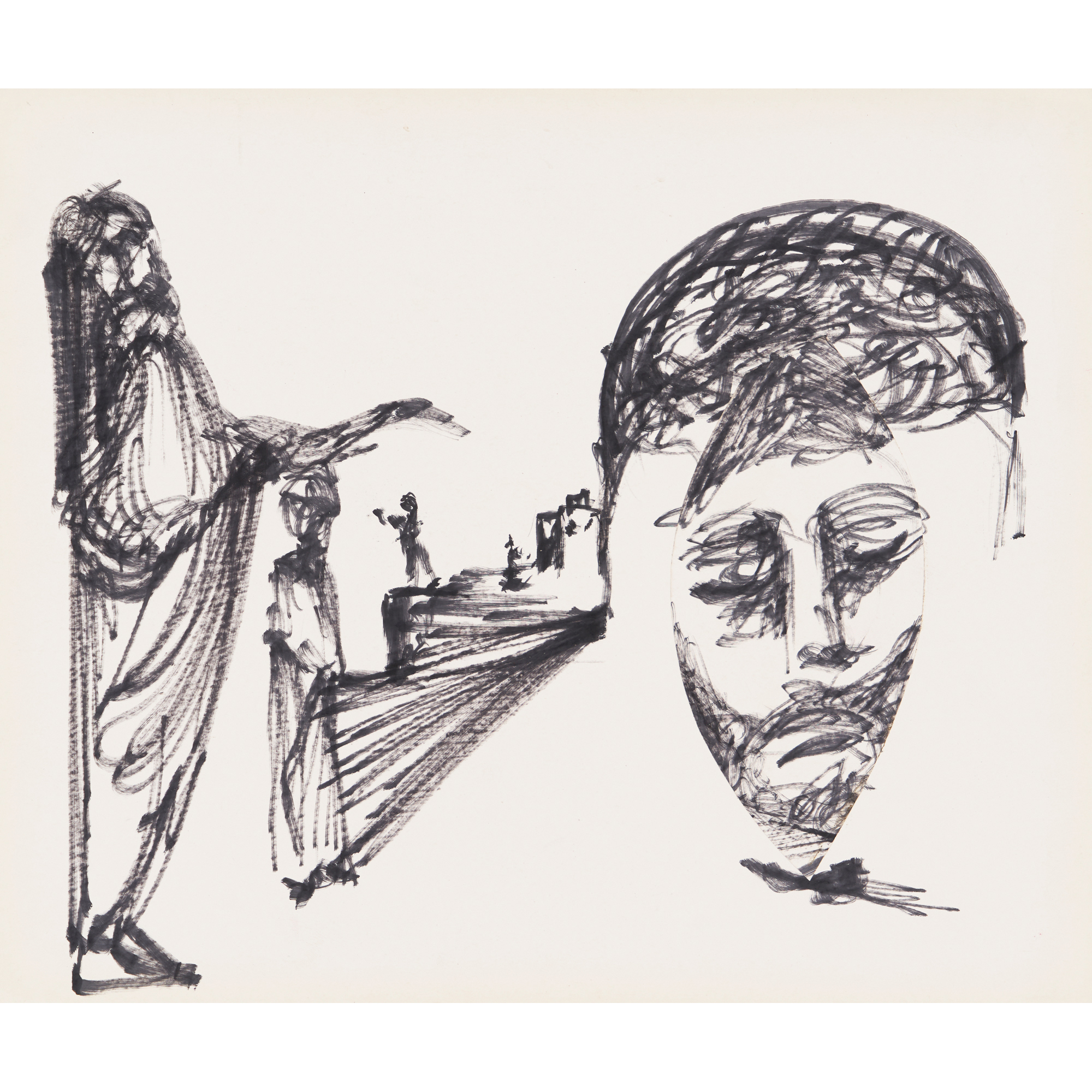 Overall good condition. Light discolouration to the sheet's edge and light handling marks are likely from the artist and their studio. This work is currently unframed.