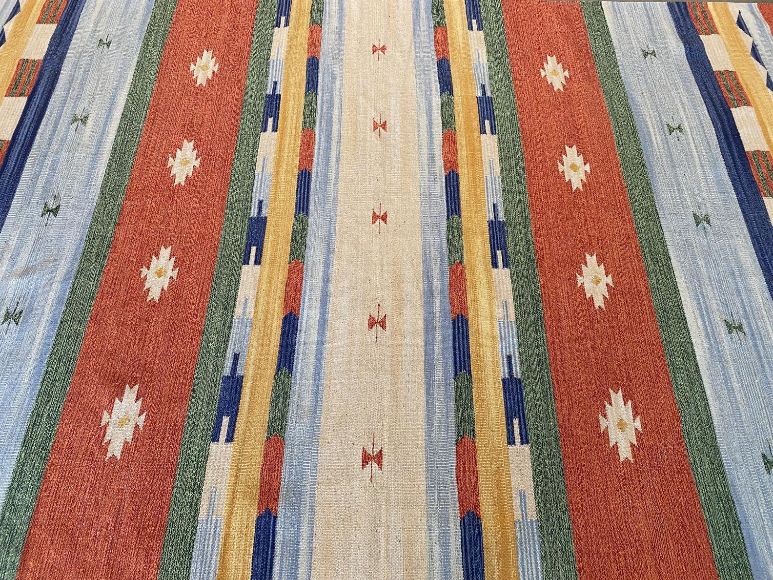 A NEW KAZAK DESIGN 100% CHENILLE COTTEN KILIM, FINELY HAND WOVEN. REVERSABLE FLATWEAVE. IN MULTI-COLOURED SHADES. ORIGIN: RAJASTHAN (290 X 190 CM) (PLEASE NOTE THERE MAY BE SOME COLOUR VARIATION FROM PHOTOGRAPH)
