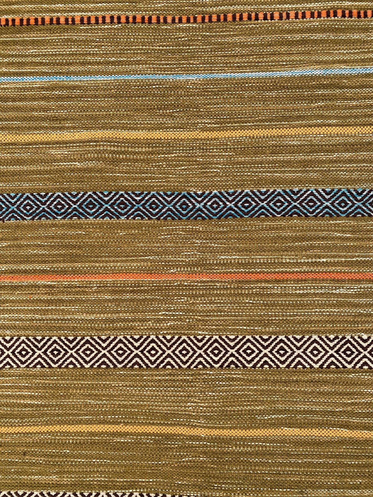 A NEW COLOURFUL, HAND-WOVEN RAJASTHANI KILIM CHENILLE FLEECE RUNNER WITH TASSEL FRINGES. ORIGIN: INDIA (300 X 80 CM) (PLEASE NOTE THERE MAY BE SOME COLOUR VARIATION FROM PHOTOGRAPH)