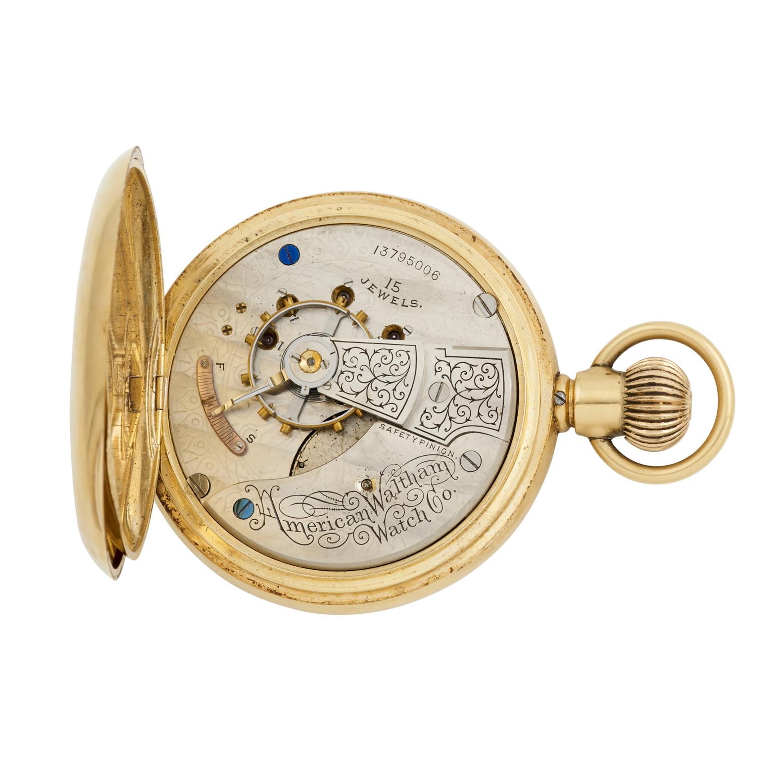 WALTHAM AN 18CT GOLD HUNTINGCASED POCKETWATCH CIRCA 1880