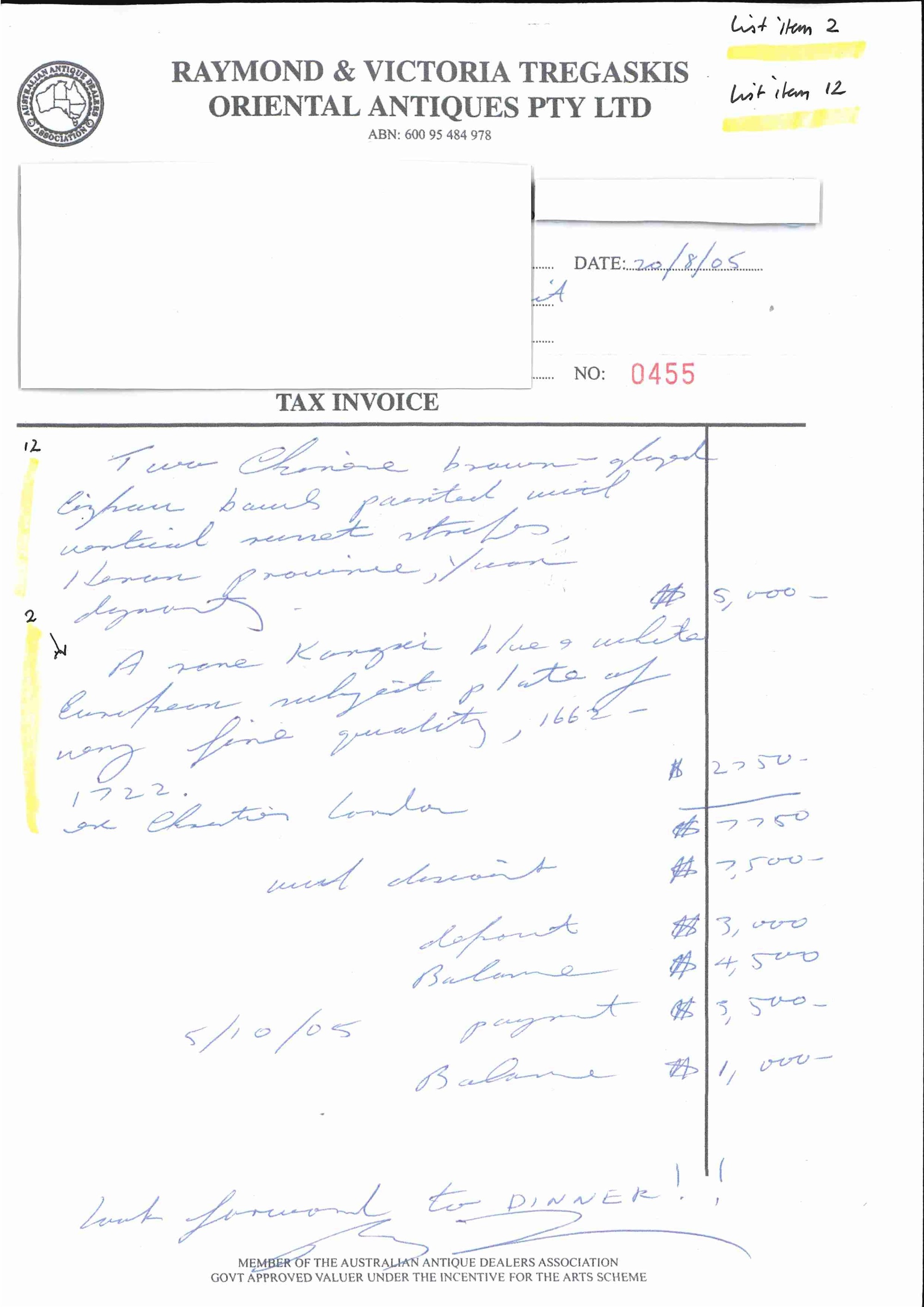 堪培拉私人收藏,2005年8月20日購藏 Raymond and Victoria Tregaskis Oriental Antiques(附原始收據,編號0455)。
