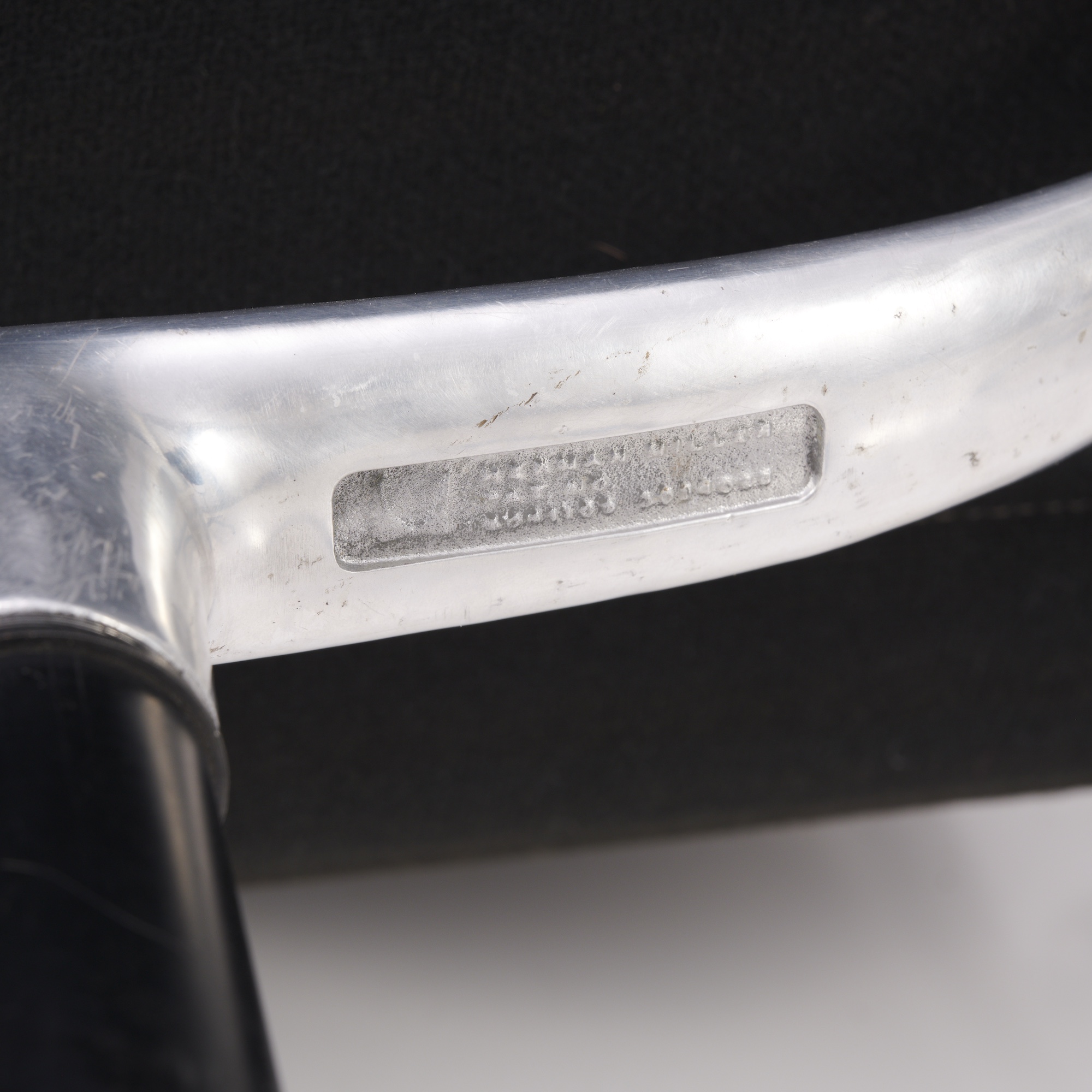 Black padded leather over an aluminium and metal frame on four point swivel base. Herman Miller mark embossed to frame.