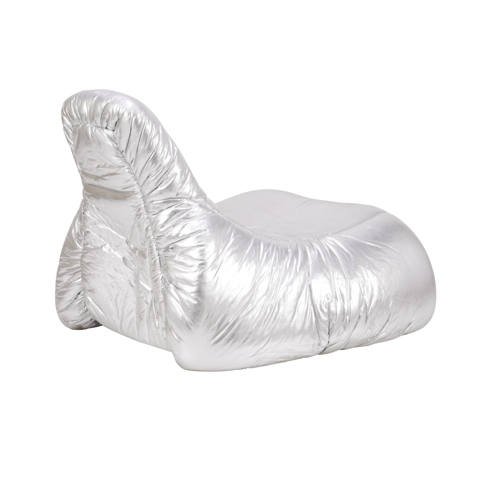 Silver lamé upholstery over curved frames.