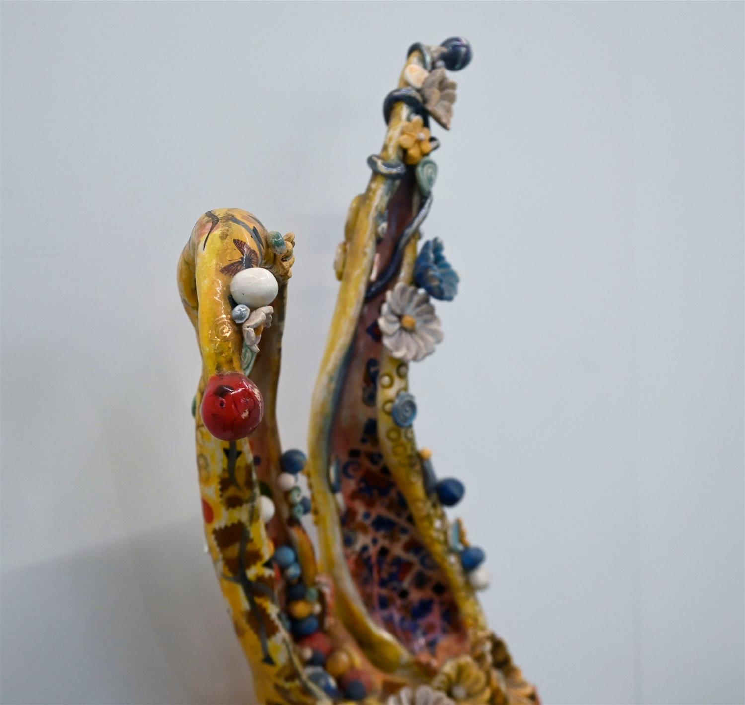 PAINTED CERAMIC, SIGNED LOWER BACK, 85 X 38CM
