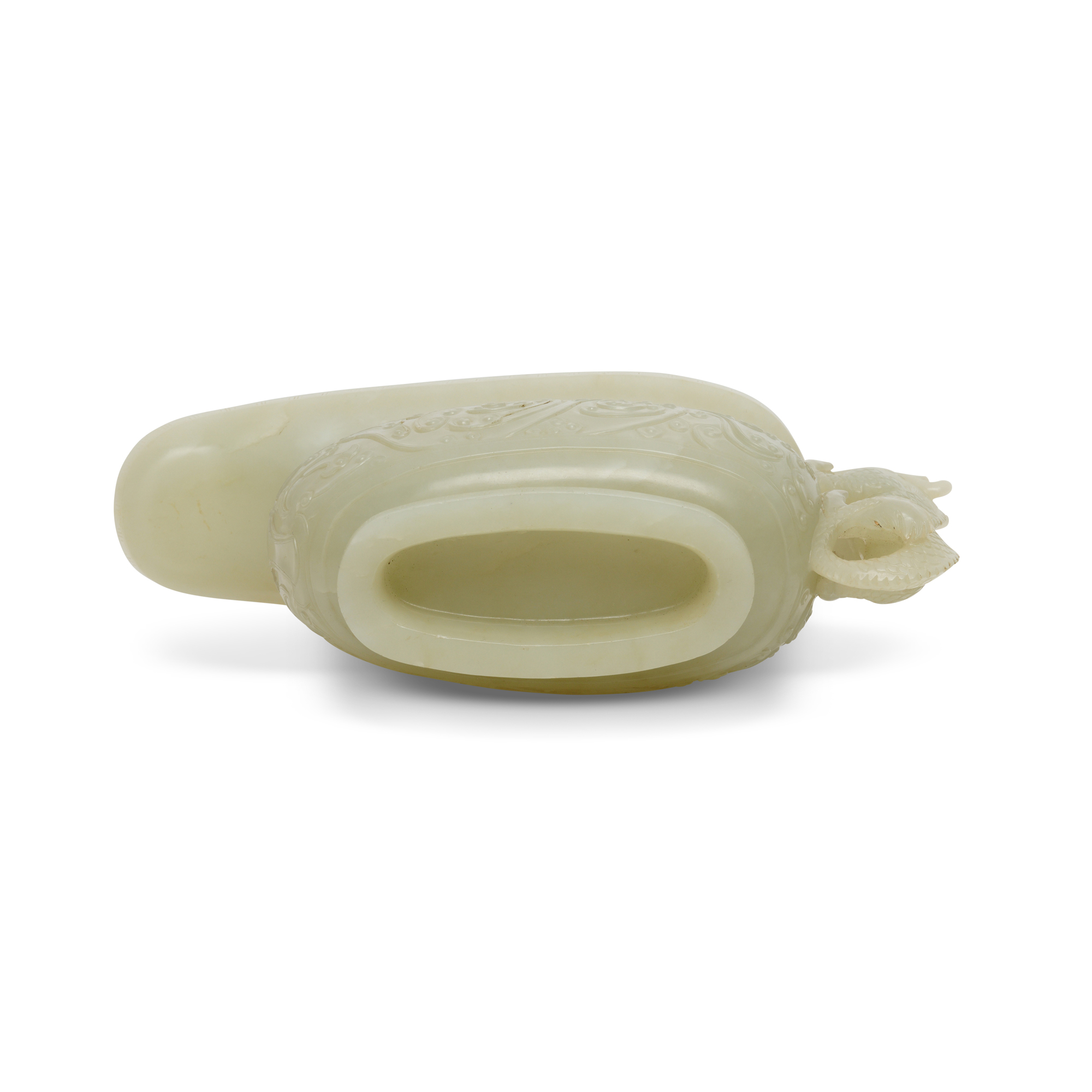 A similar jade gong-form vessel, see Christie's New York, 23 Sep 2022, lot 759. Another related example, also see Bonhams Hong Kong, 26 May 2013, lot 189.