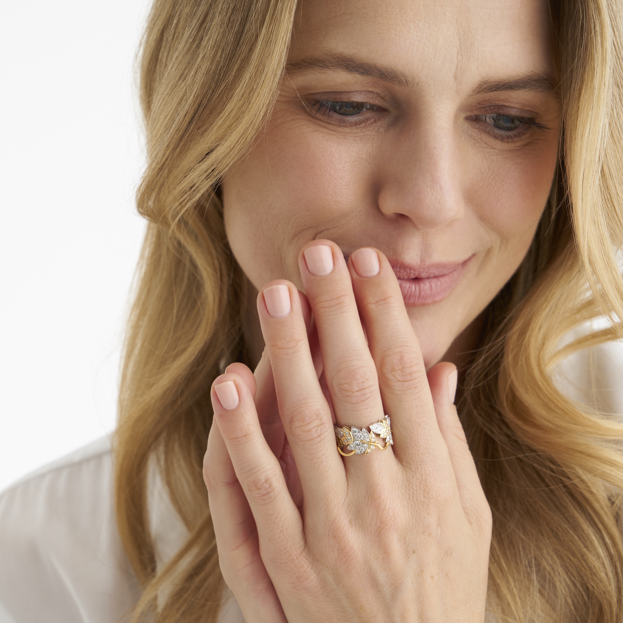 Modelled as a continuous line of leaf motifs, detailed throughout with brilliant-cut diamonds together weighing approximately 1.60 carats, size L-M, signed Schlumberger and Tiffany & Co., gross weight approximately 8.8 grams.