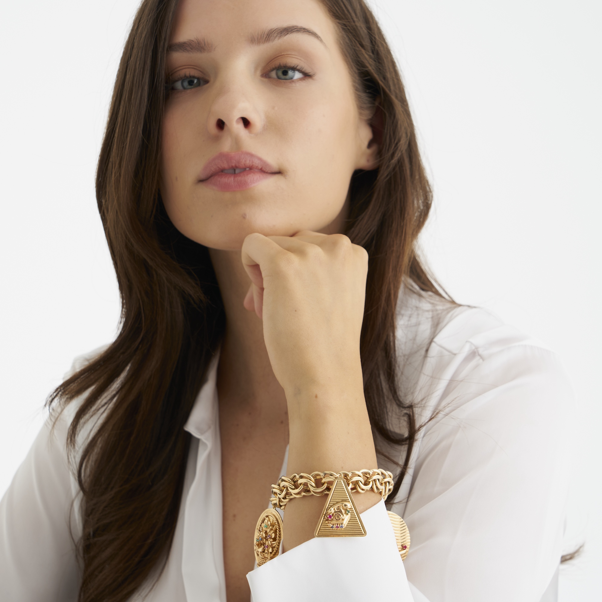 14CT GOLD AND GEM-SET CHARM BRACELET
