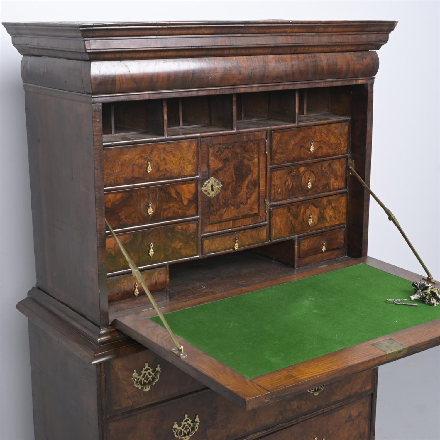 A GEORGE I FIGURED WALNUT ESCRITOIRE, 1710s (A/F) (159CM H X 107CM W X 49CM D)
