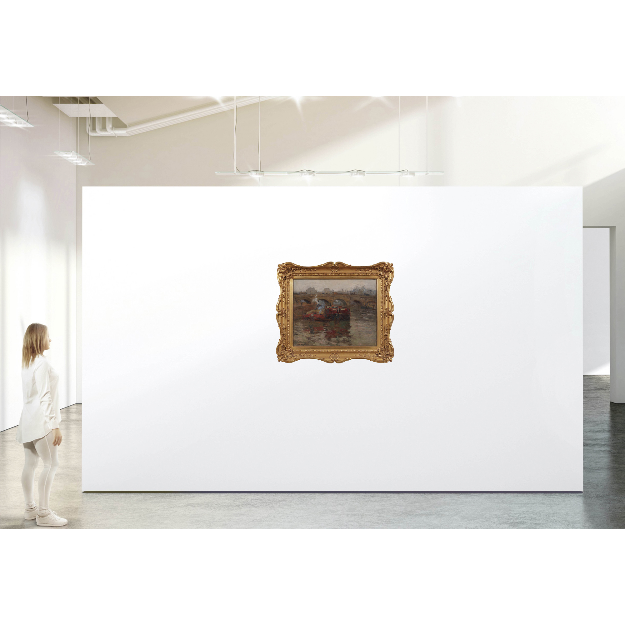 Among his most evocative works are his Parisian cityscapes, especially those depicting the historic bridges of the Seine. In paintings of the Pont Neuf, the city's oldest standing bridge, Ashton revels in the soft tonal shifts of grey skies and dusky riverbanks. His brushwork is characteristically loose and fluid, allowing form to emerge through suggestion rather than precision. The enduring bustle of the city is balanced by a quiet lyricism and his bridges are not just architectural subjects, but liminal spaces where people and place, history and movement, intersect. These works align Ashton with the French Impressionists and also with British contemporaries like Philip Wilson Steer, who shared a fascination with the urban landscape filtered through changing light.