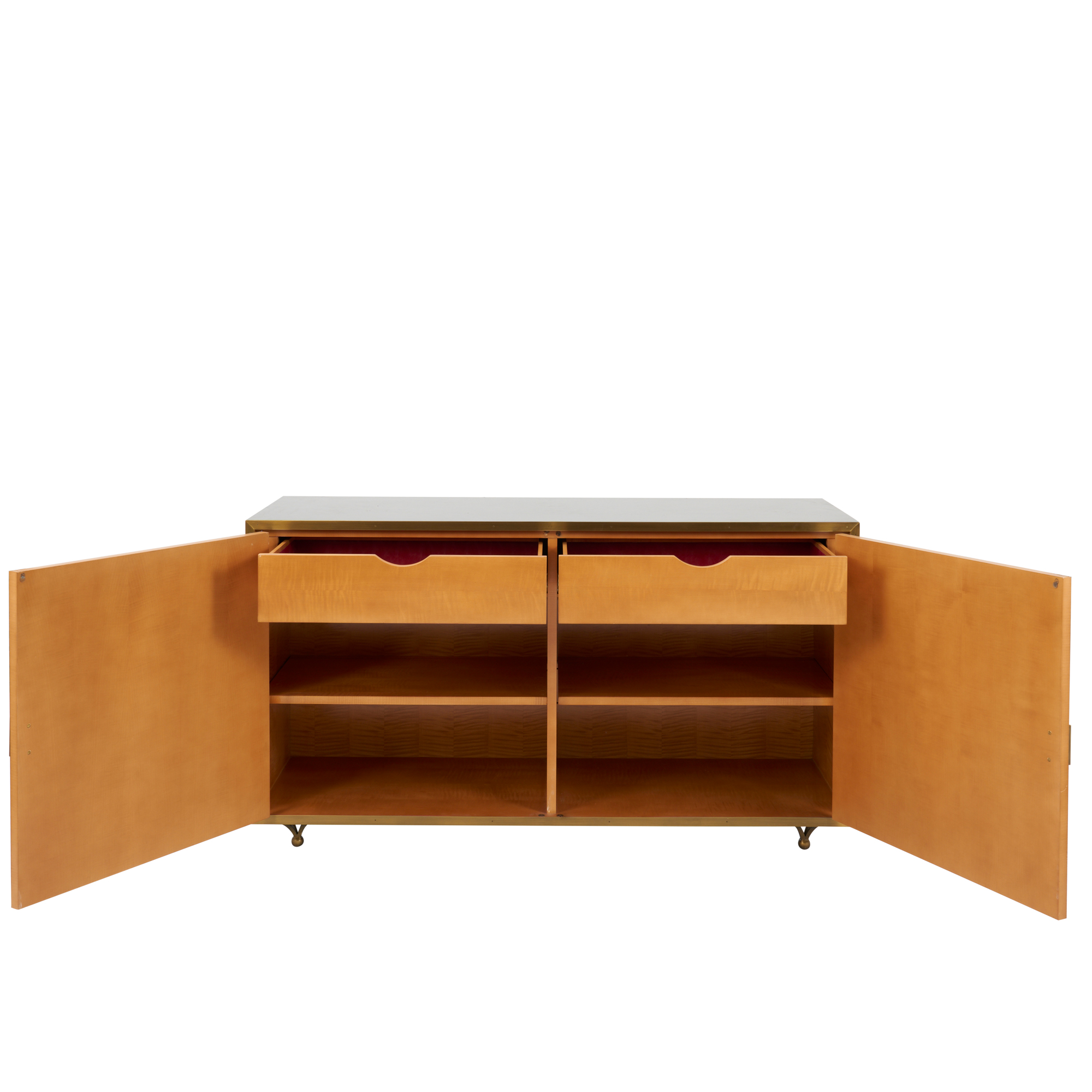 Two door, brass, lacquered parchment, cherrywood and leather.