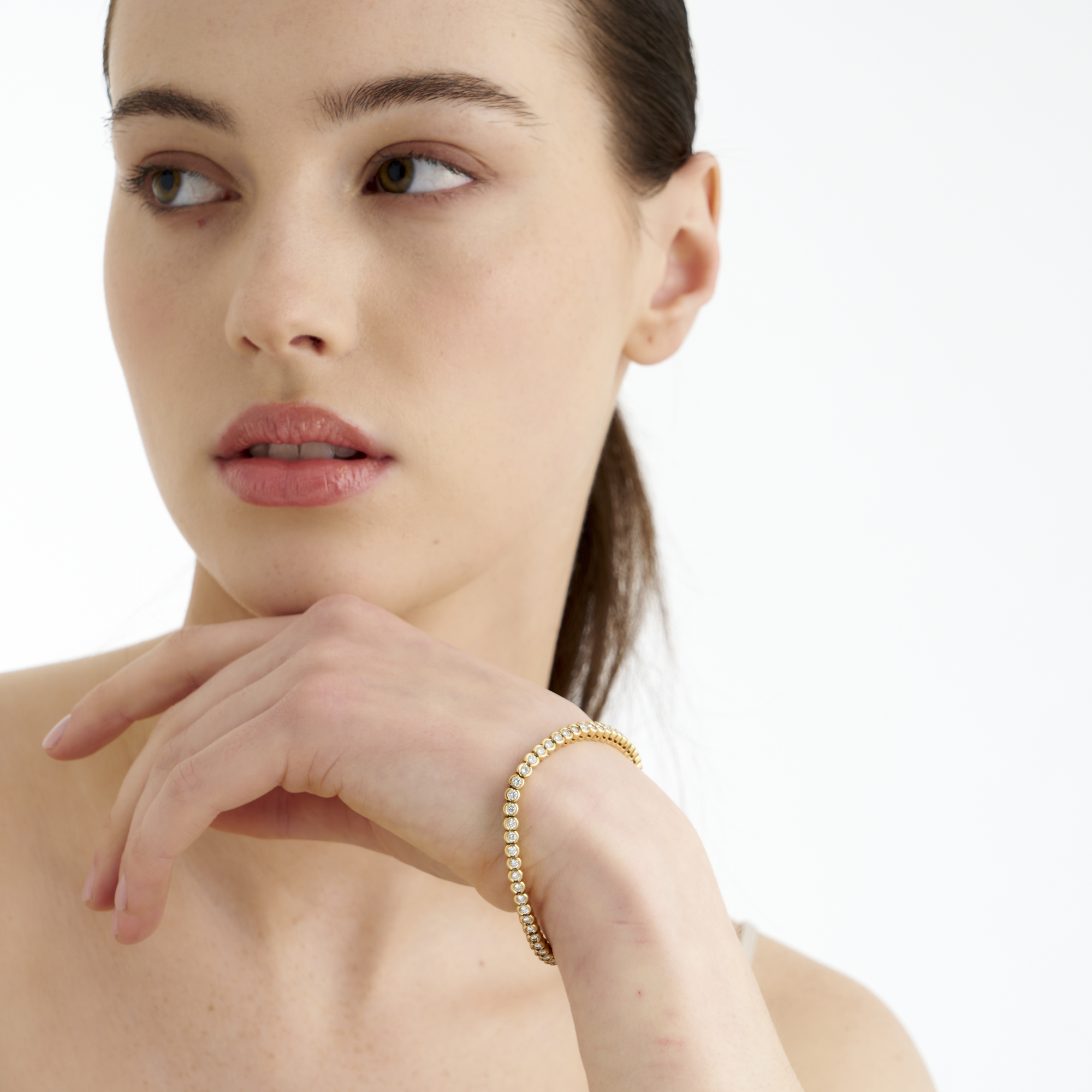 Modelled as a continuous line of fifty-eight semi-bezel-set round brilliant-cut diamonds together weighing approximately 3.00 carats, completed by a box clasp, length 180mm, gross weight approximately 16.7 grams.