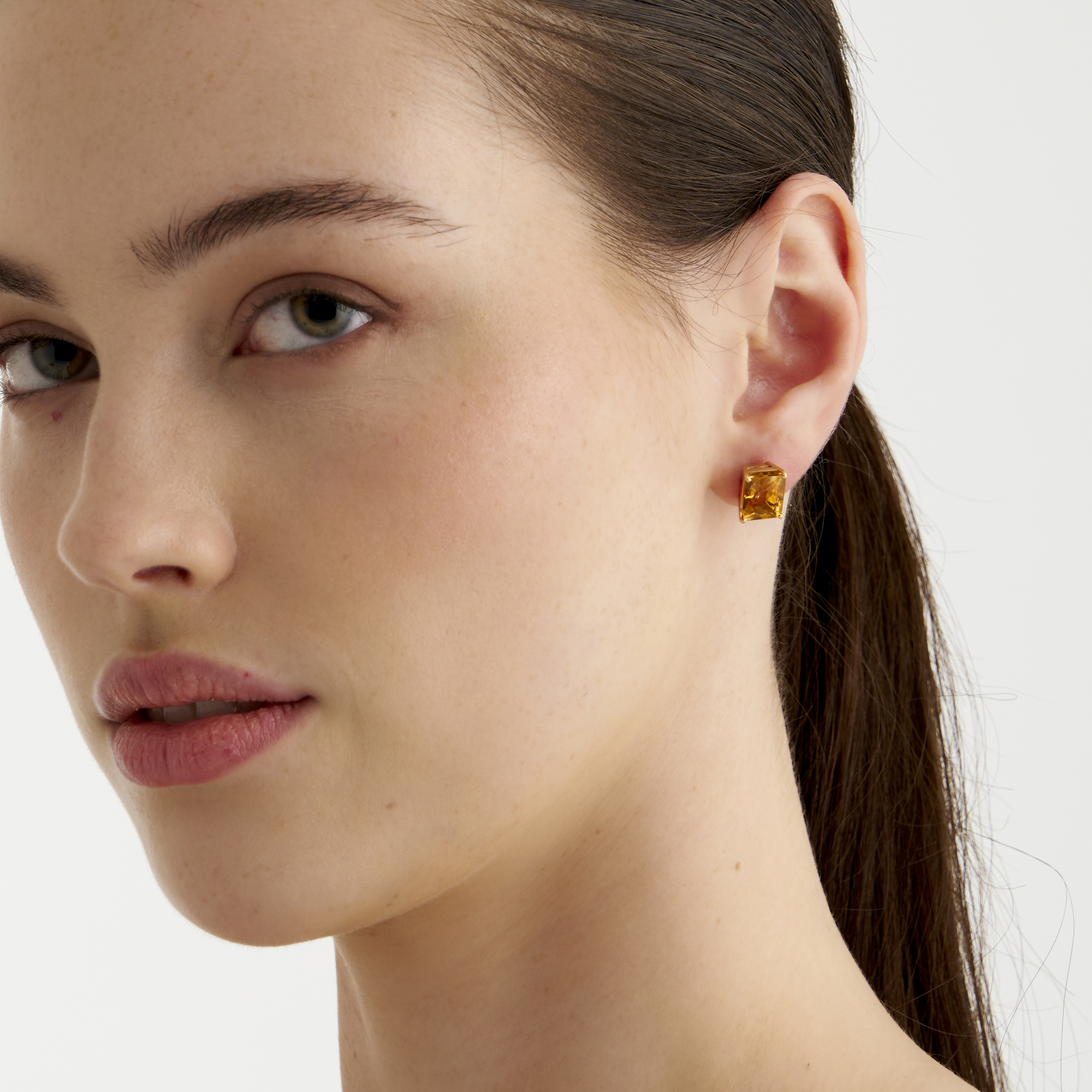Each earring comprising a corner claw-set rectangular cut citrine, the citrines together weighing approximately 5.20 carats, to post and butterfly fittings, gross weight approximately 5.60 grams