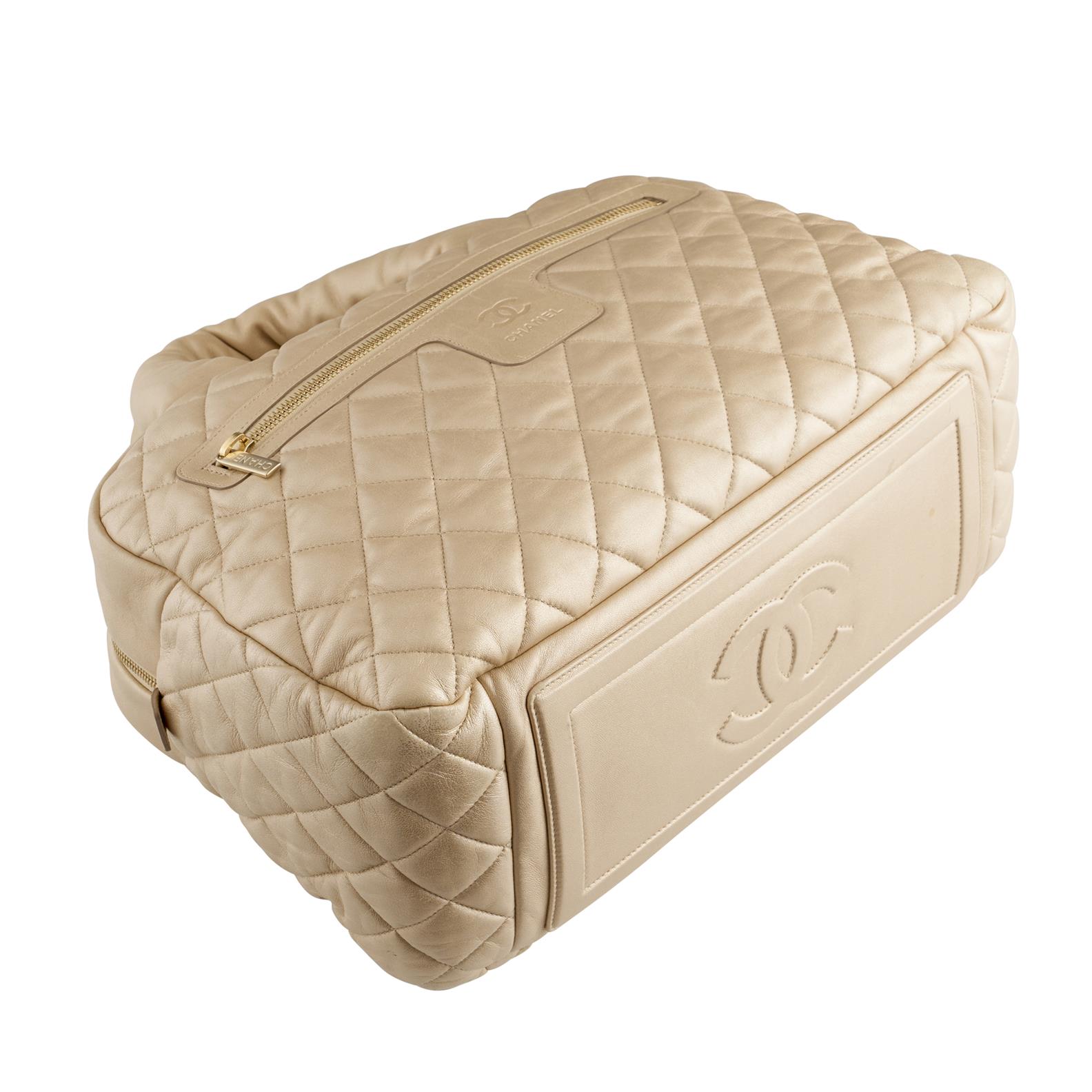 CHANEL, A VINTAGE TOTE BAG STYLED IN LIGHT CARAMEL QUILTED LEATHER WITH OVERSIZED CC MOTIF, FEATURING GOLD TONE HARDWARE AND DOUBLE..