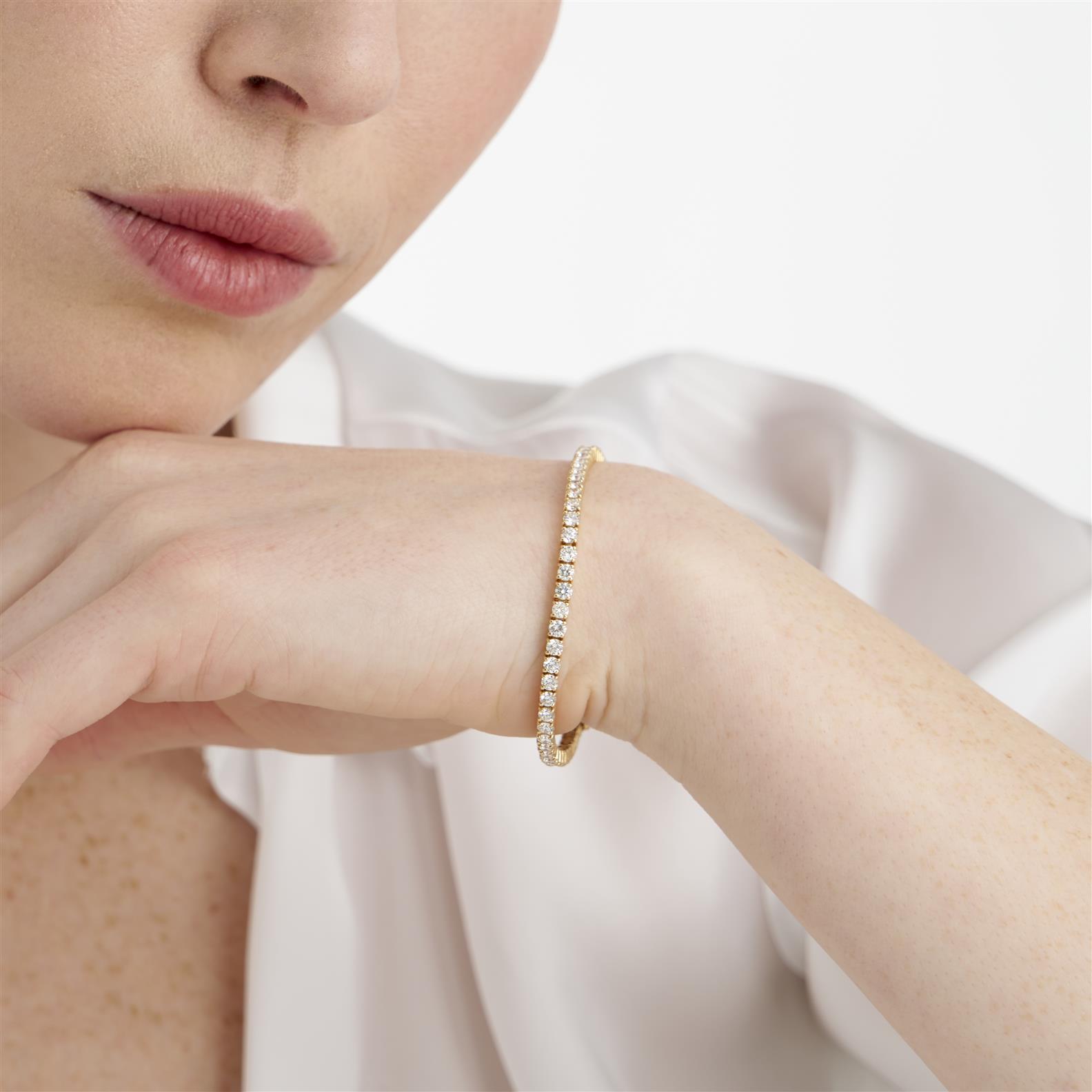 Composed of a line of 58 claw-set round brilliant-cut diamonds completed by a concealed box clasp, the diamonds together weighing approximately 5.08 carats, mounted in 14ct gold, length 175mm.
