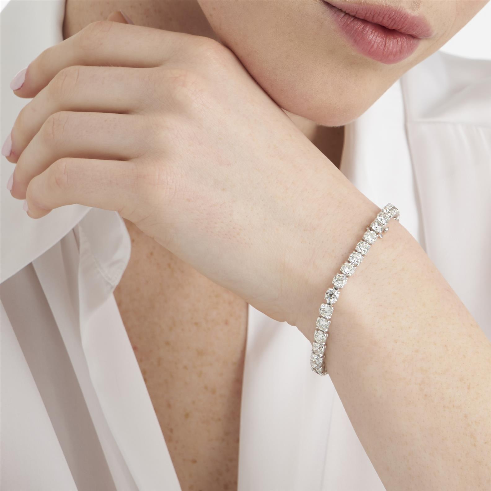 Composed of a line of 33 claw-set round brilliant-cut diamonds completed by a concealed box clasp, the diamonds together weighing 16.81 carats, mounted in 18ct white gold, length 175mm.