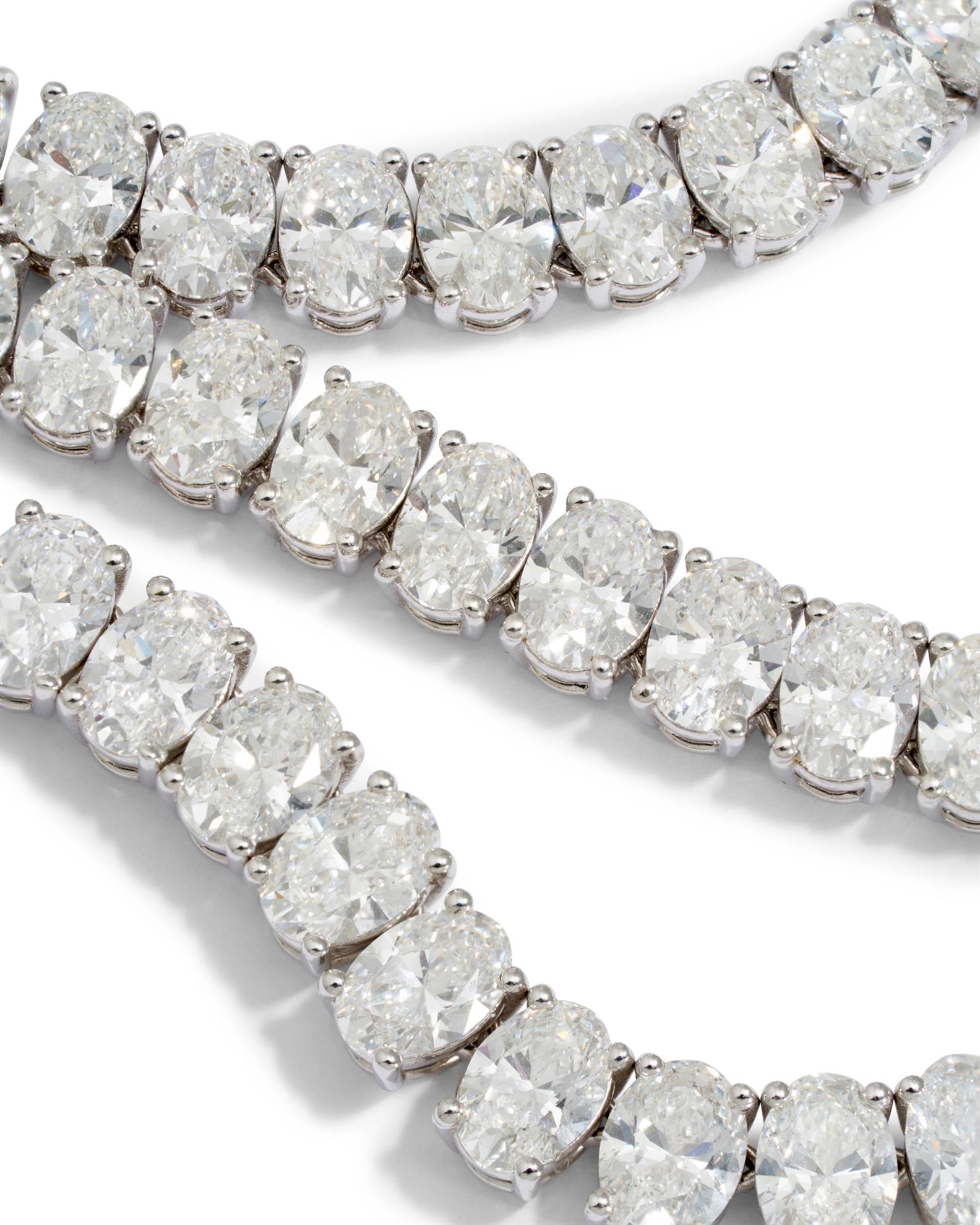 Composed of a uniform line of 83 claw-set oval cut diamonds completed by a concealed box clasp, the diamonds together weighing 42.44 carats, mounted in 18ct white gold, length 400mm.