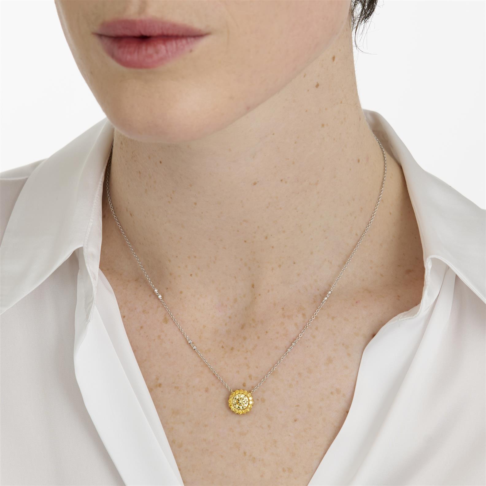 EXTRAORDINARY FANCY INTENSE YELLOW DIAMOND AND DIAMOND PENDANT NECKLACE